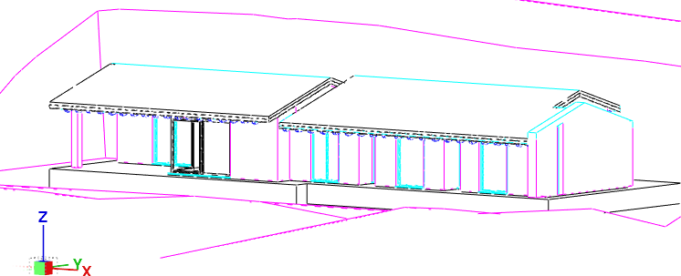 puoi fare un render di questa casa di un solo piano con muri in sasso e intonaco all interno di una collina piena di vegetazione