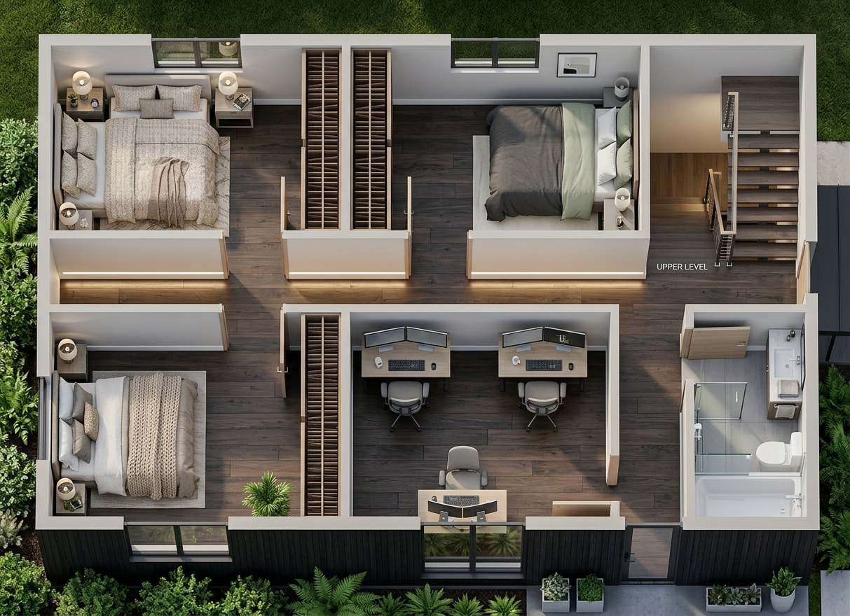 convert this matterport floorplan into a clean architectural blueprint style preserve the exact layout and proportions use thick black exterior walls thin interior walls white background door swing symbols window openings centered room labels and clean vector linework similar to a professional real estate floorplan remove scan artifacts and straighten walls while maintaining the original plan geometry