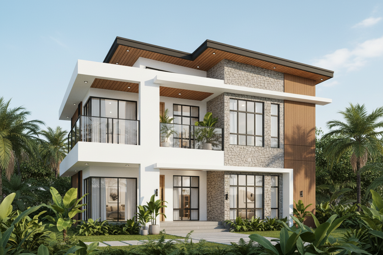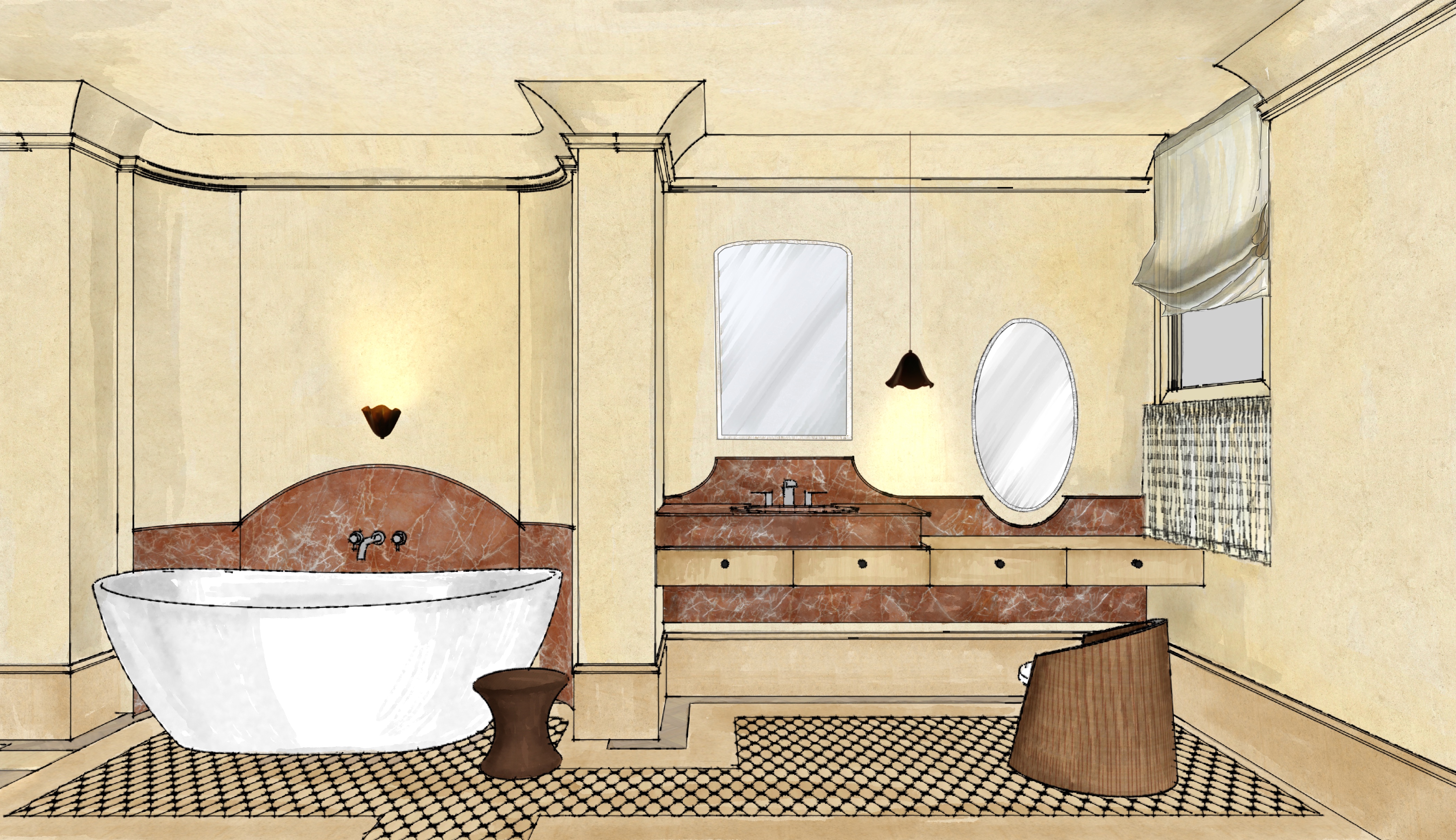 exterior shot turn this elevation into a 3d render inkeeping with the style selection the bathroom should feel warm and elegant