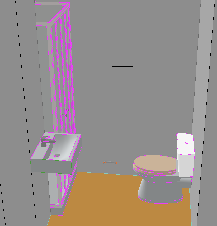 modern bathroom with a sleek design featuring a glass shower enclosure with subtle pink accents and chrome fixtures a minimalist white sink with a reflective silver faucet is mounted on the wall the toilet has a white ceramic finish with beige seating the walls are a soothing light gray creating a calming atmosphere complemented by a warm grey floor that adds contrast soft ambient lighting enhances the modern and cozy feel