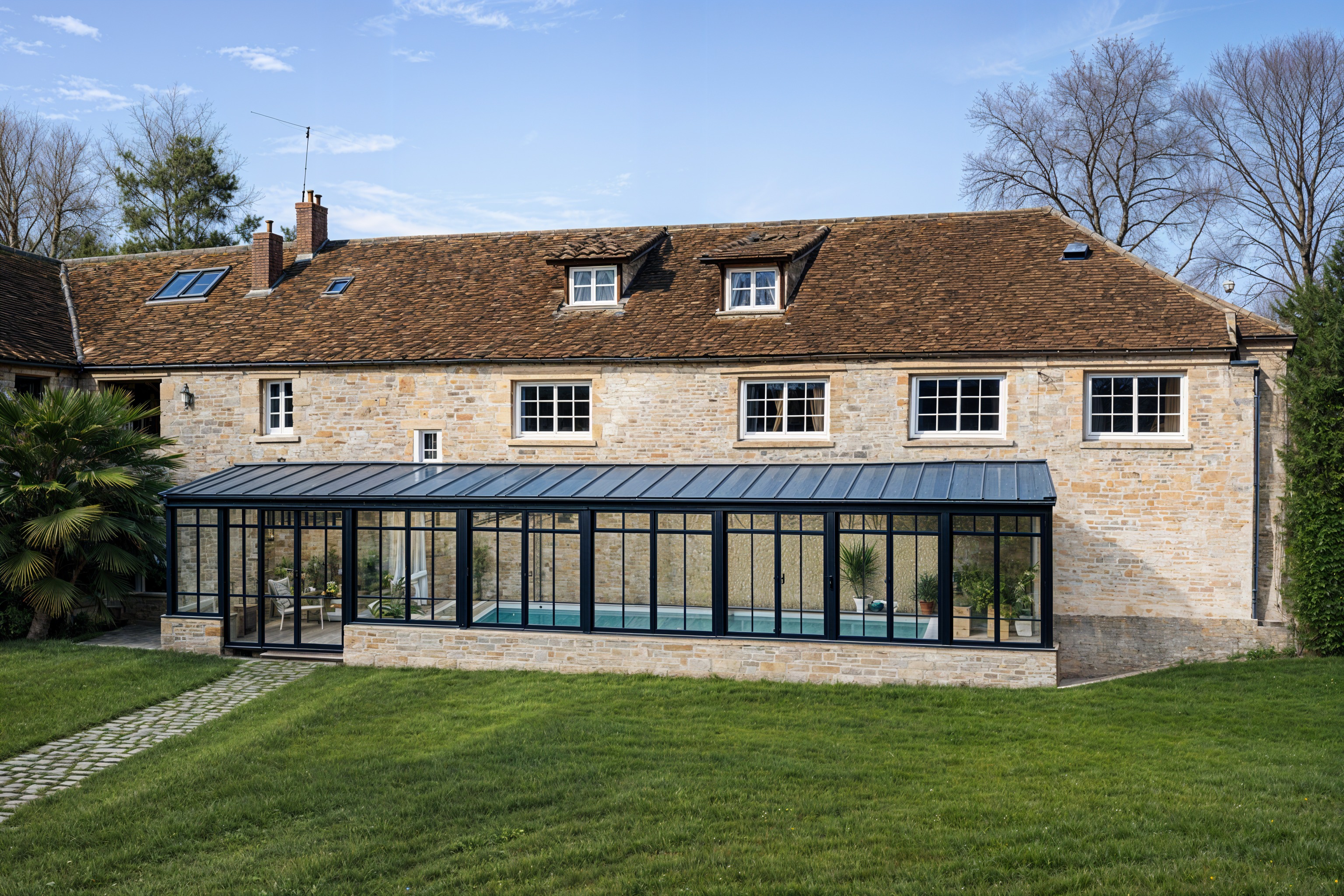 more detail to the glass facade and a glass roof but dont remove the swimming pool