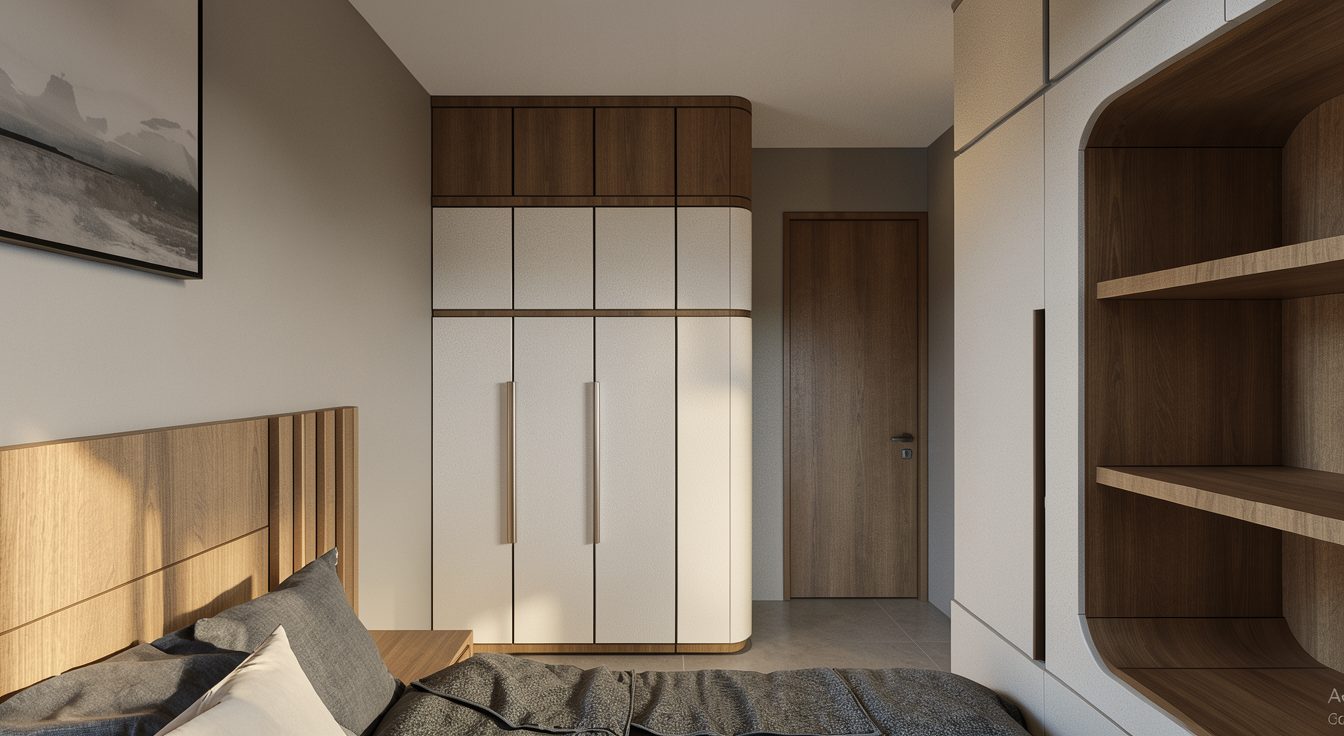 create ultra realistic images without changing any structure shape design or material do not resize the jpeg add indirect lights inside the wardrobe shelves