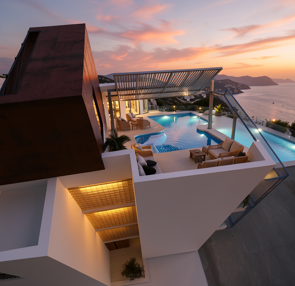 mejorar iluminaci n con sombras naturales hacer dic soleado el c sped verde de la izquierda llenarlo de toda plantaci n en garras estepas y lavandas la parte celeste es piscina
