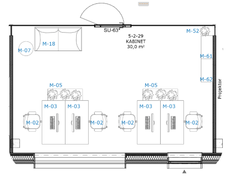 convert this floor plan into a realistic isometric 3d view of a full house show the space from an elevated angle with furniture walls and details visible use narbutas active for the desk black table frame and walnut desktop use a black task chair with a headrest for the plants in the corners use a black plant pot with a big strelitzia plant for the floor use tapibel grunge gray carpet tiles for the sofa use the b t design led 2 seater sofa in light brown faux leather with the b t modest side table in full black use dark grey narbutas parthos acoustic planter boxes in front of the working desks with small aglaonema plants inside the cabinets on the right side are walnut melamine do not add any lamps or accessories except for a screen and keyboard on the desk use the same furniture as shows on the plan do not change the orientation of the floorplan