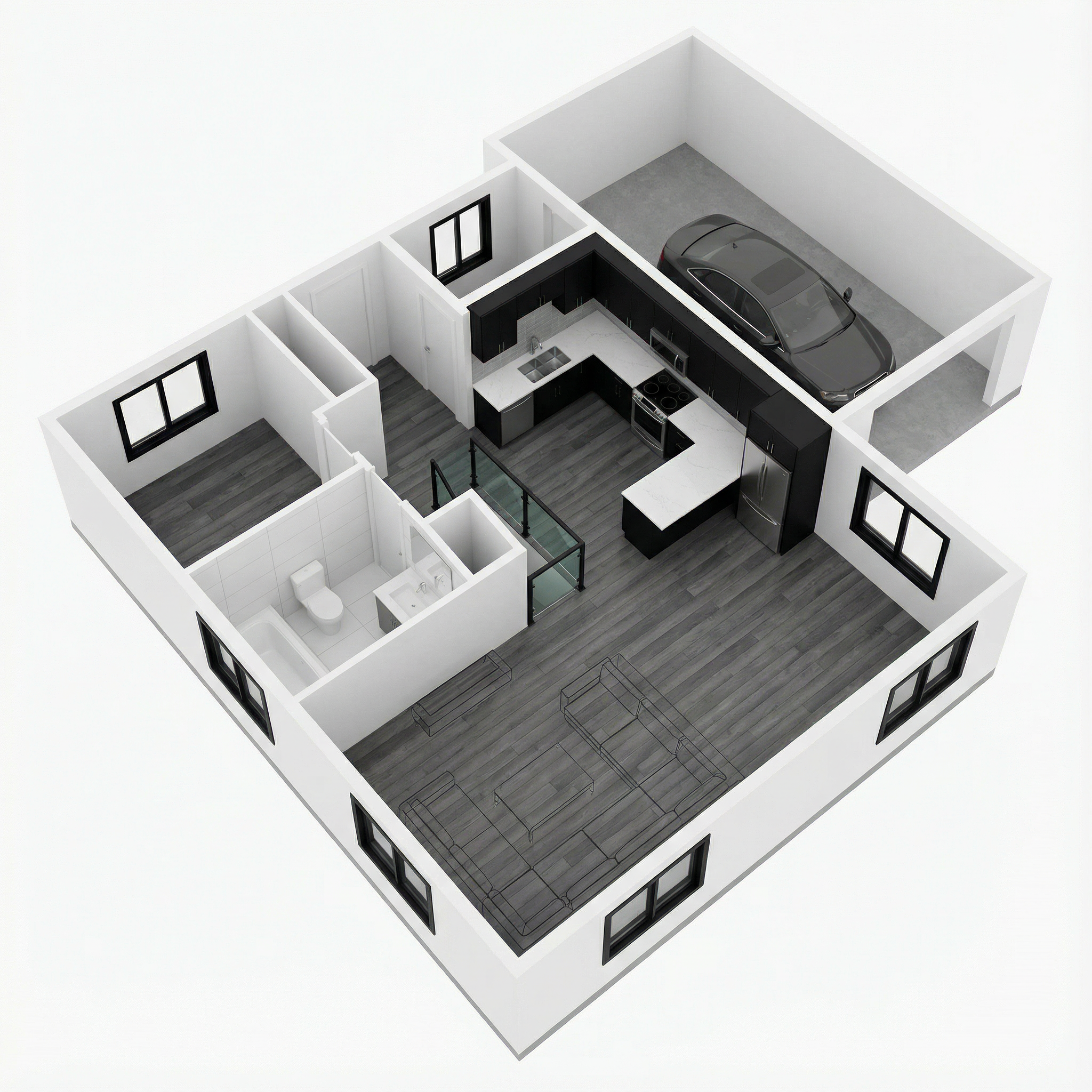 a modern farmhouse with green rolling hills and a few oak trees in the background black windows tan stacked limestone siding stained light brown cedar accents black fascia and shiplap siding black standing seam metal accents dark gray asphalt shingle roofing layered california native planting time of day is afternoon