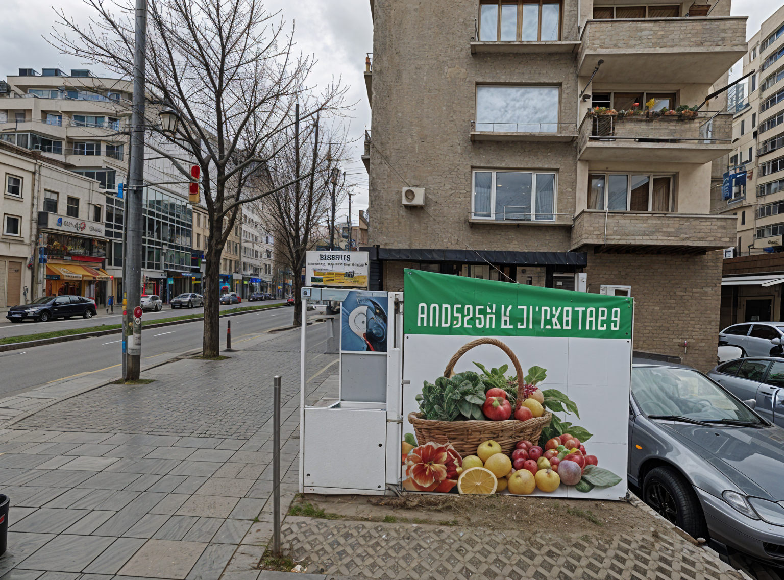 clean up the image remove people pillars and road signs remove the text box in the lower left corner remove the umbrellas make it a summer scene thick dense leaves on the trees