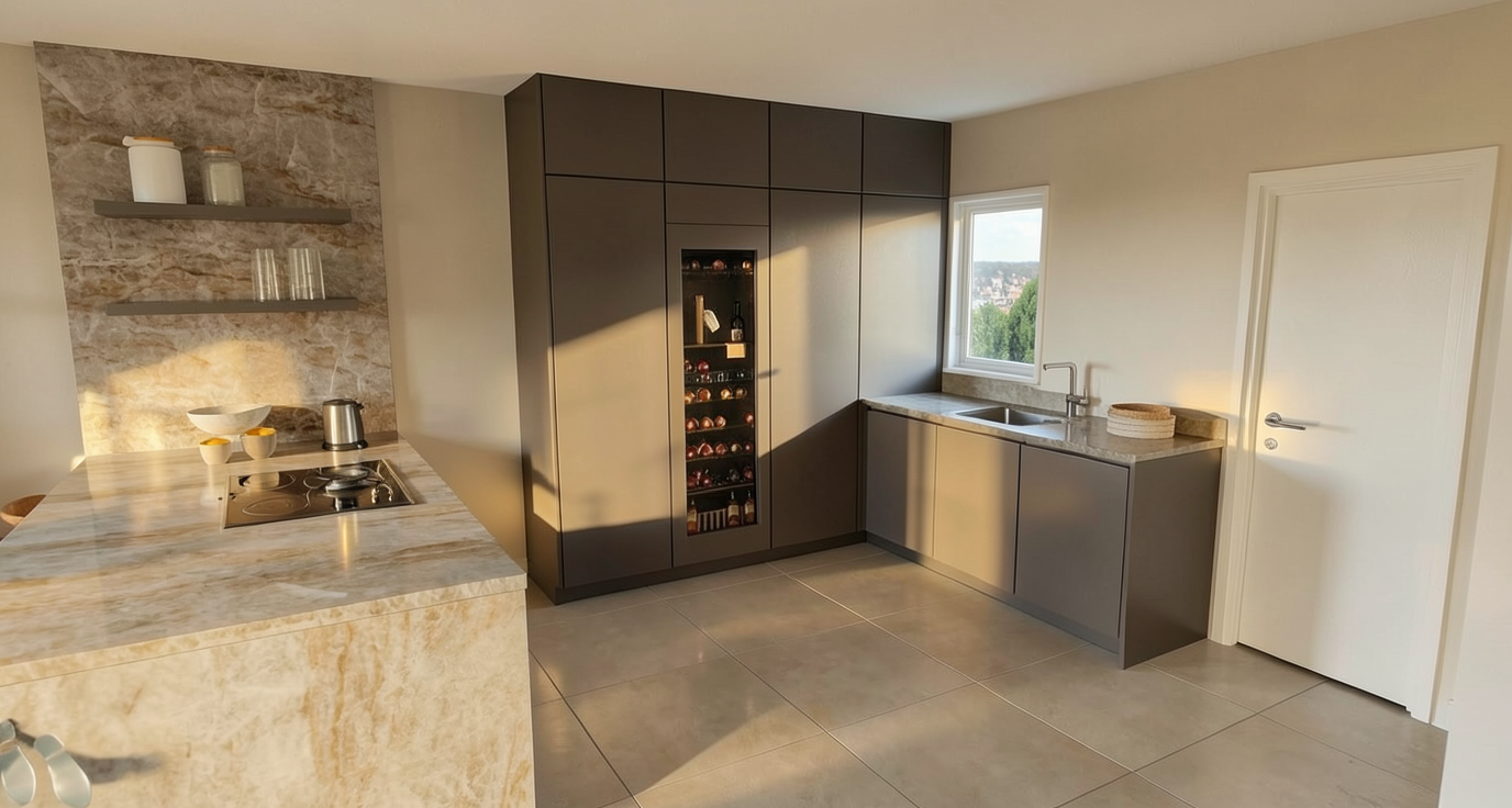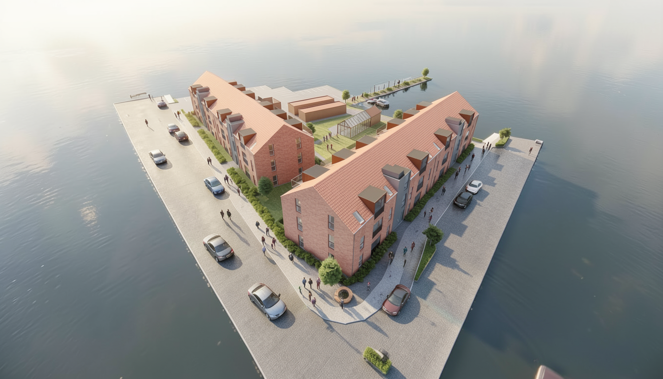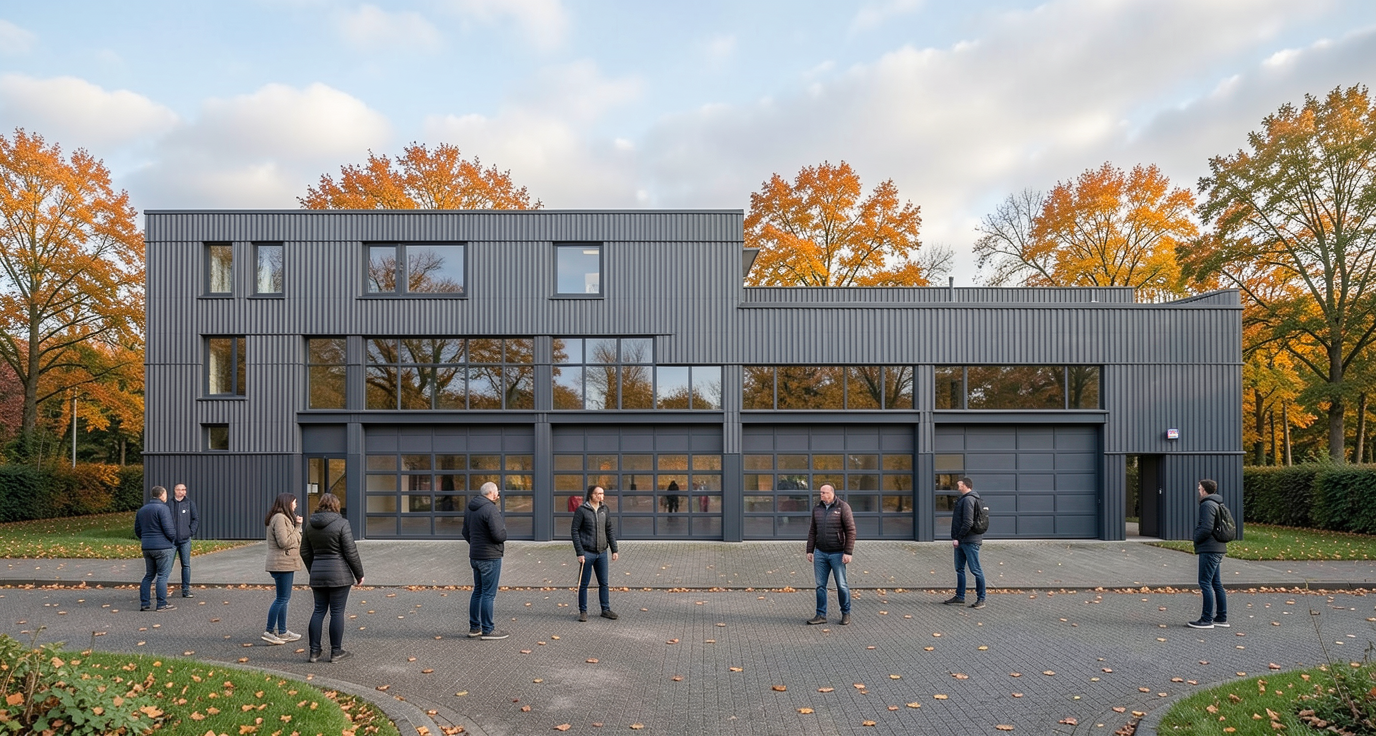 use the provided enscape render as base reference keep exact layout proportions and camera angle make materials more realistic add cars do not change background