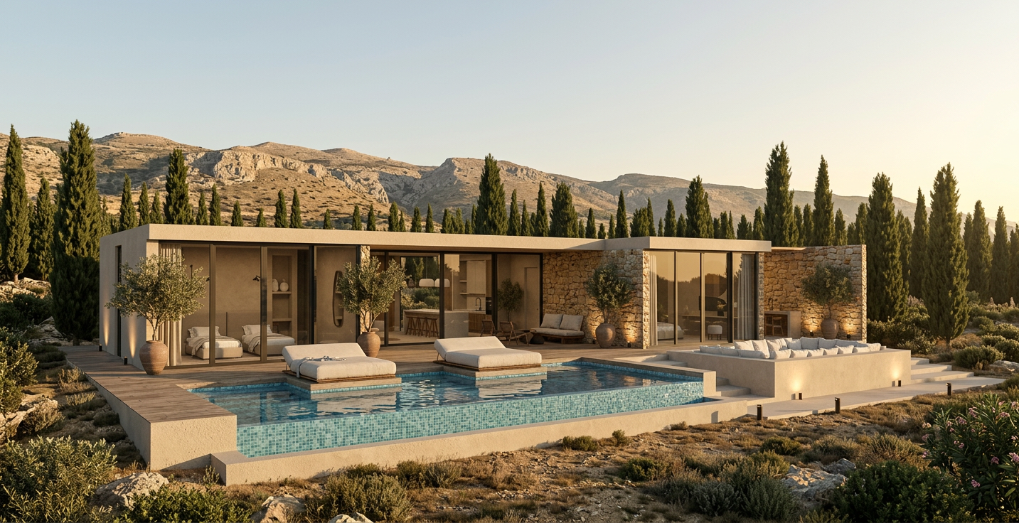 make the grass short mowed reduce the number of cypress trees on both sides of the photo a little do not change anything else in the photo