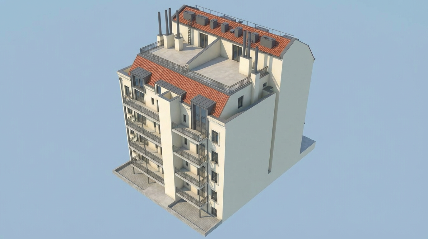 crea il retro dell edificio con giardino basandoti sulla foto di google earth
