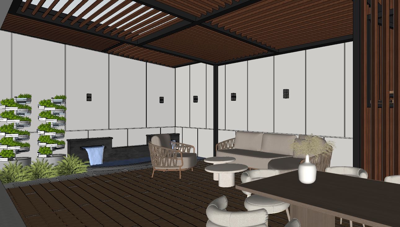 make ultra realistic image without changing any structures shapes design and materials do not change the jpeg size add lights to the wall lamps use soft wood texture decking to the wood floor part