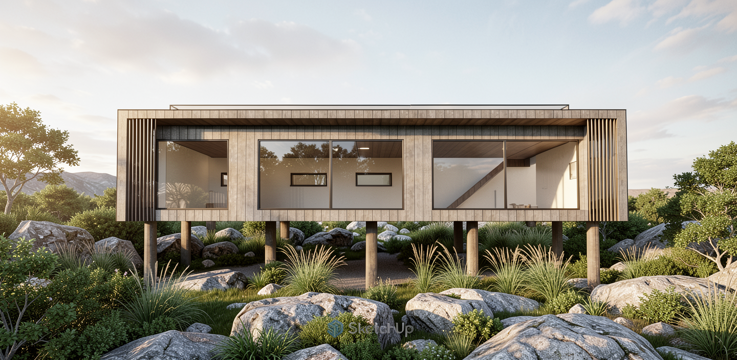 wooded land add landscaping maintain materials and colors make realistic rendering