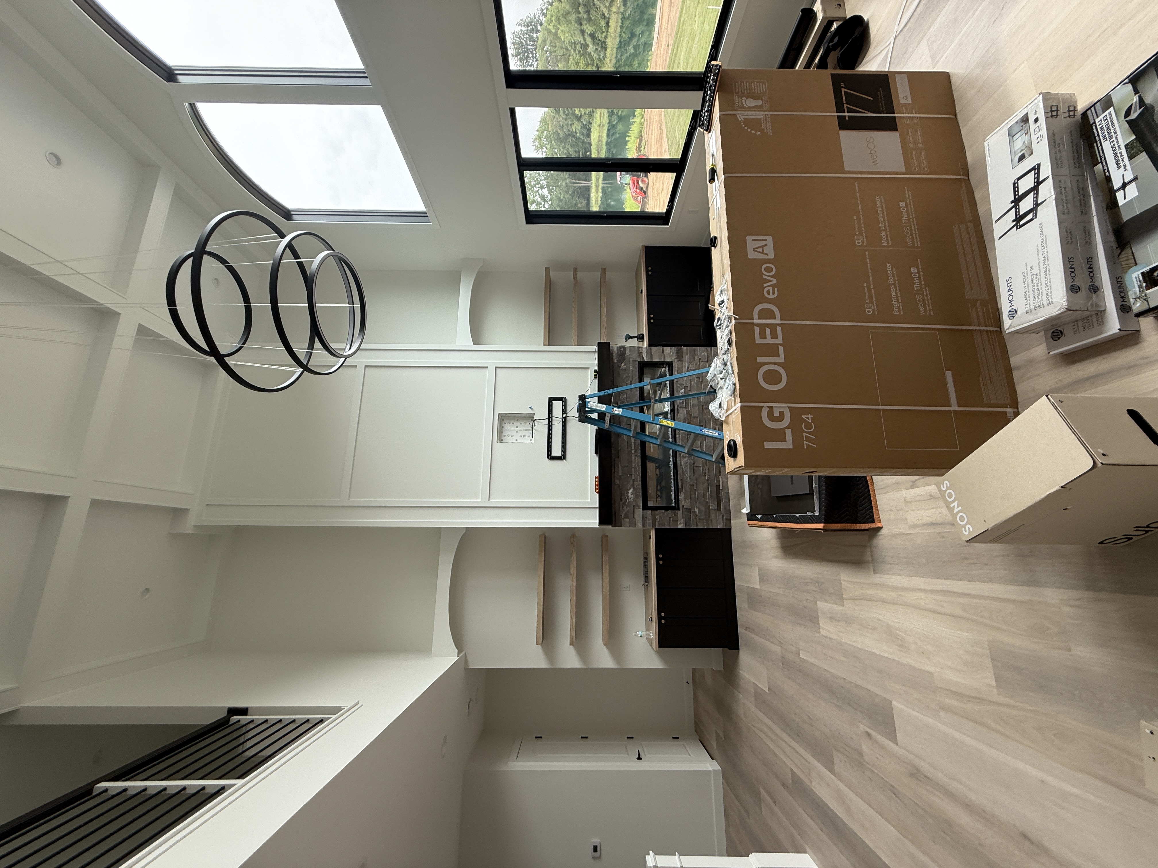 arch above shelves like in origina picture stain floating shelves on right side of fireplace