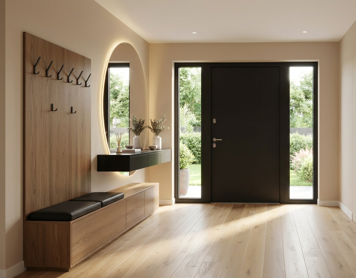 entry hall area 2 2x3 5m modern style black and wood