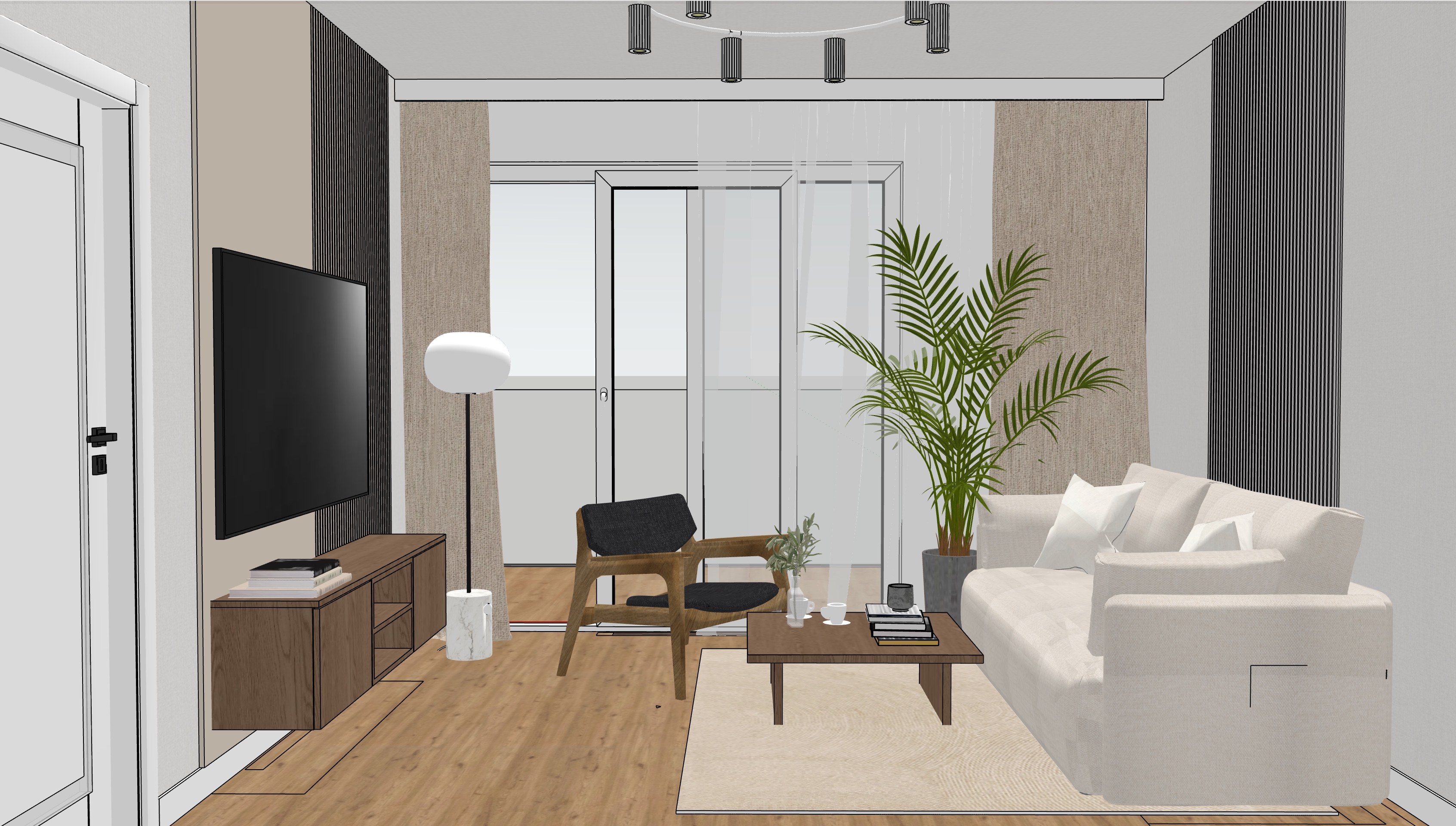 create a warm elegant apartment interior with a spacious terrace overlooking a beautiful lake the design should feel calm cozy and inviting with a soft beige color palette natural materials and pleasant light use warm neutrals creamy whites sand tones light wood soft fabrics and subtle textures large glass doors should open to the terrace blending the indoor and outdoor spaces seamlessly the terrace should feel comfortable and stylish with lounge furniture and a relaxing atmosphere focused on the lake view the whole space should feel airy refined peaceful and timeless with a high end yet natural aesthetic