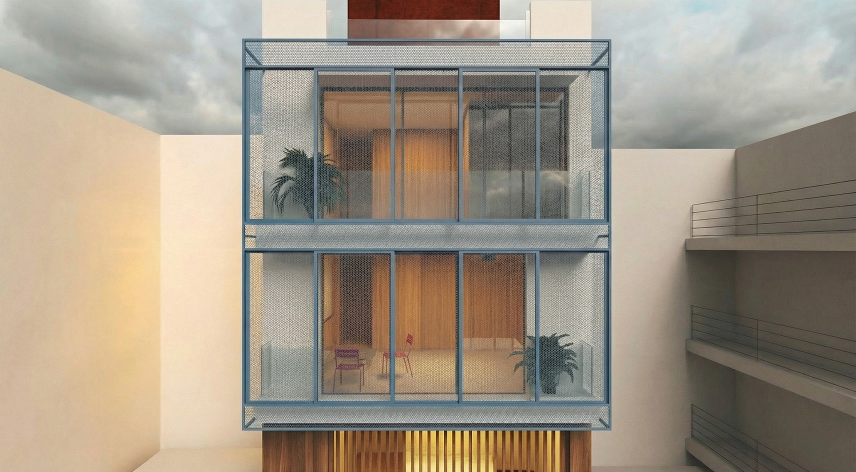 change the blue metallic blinds into somehting white more minimal dont affect any other geometry color or material