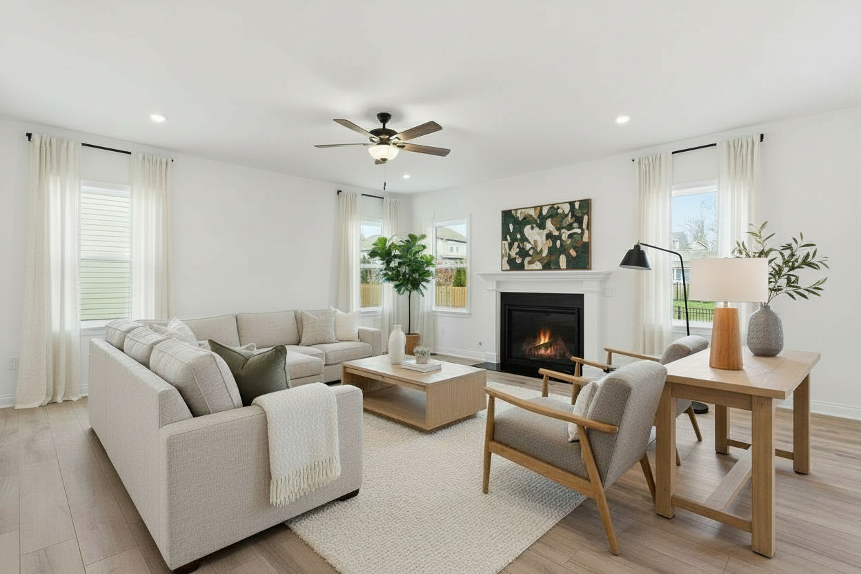 add another green pillow on the far side of sofa move the sofa table to the back center wall between windows and make that table less deep