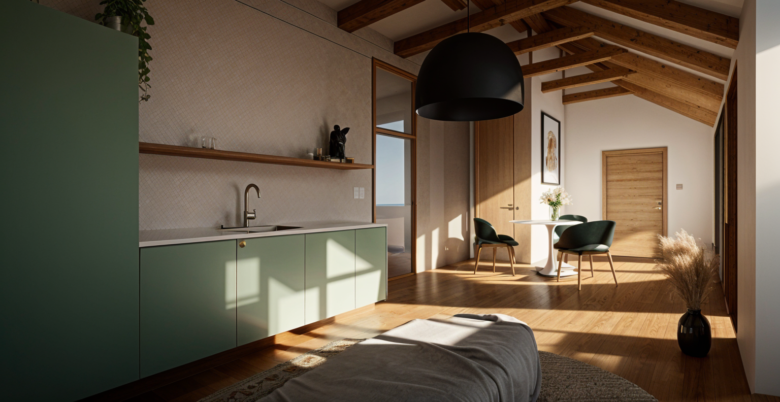 create a serene urban scene depicting modern residential buildings under a clear blue sky with soft clouds the buildings are white with gray accents adorned with green plants on the balconies a vibrant green park with lush trees surrounds the scene with various people engaging in leisure activities include a well maintained road with white and gray vehicles and a cyclist on a pathway enhance with colorful flower beds featuring reds pinks and purples the atmosphere should be peaceful and inviting with warm sunlight casting soft shadows architecture