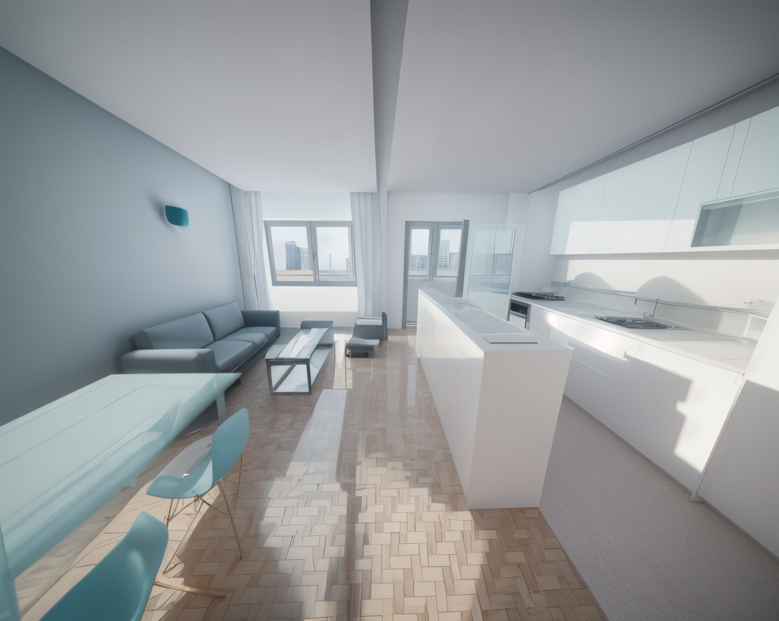 as a design expert please create a detailed visualization of a brazilian style tropical restaurant interior featuring abundant plants and wallpaper maintaining the existing geometric layout include a bar with green vertical ceramic tiles barhocker and visible bottles and glasses behind it along the windows and back wall the tables are set with cutlery and crockery each on a polished concrete floor ensure the design reflects a lush vibrant tropical ambiance with authentic brazilian elements
