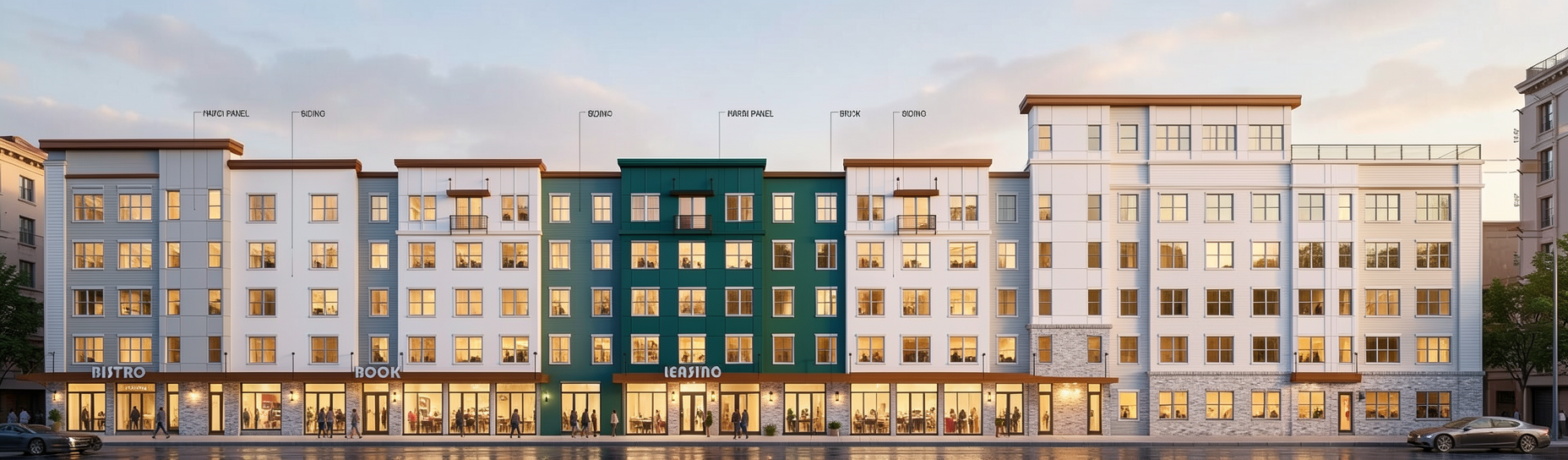 do not touch anything on the first floor on the second third fourth and fifth floors mix different variations of white brown wood and dark teal create some symmetry