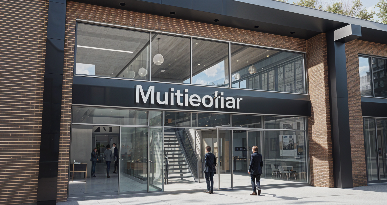 classical exterior shot render a modern industrial workspace with a sleek design architecture
