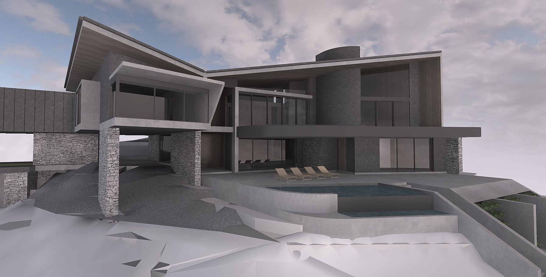 add a gravel path at left side of building under the carport