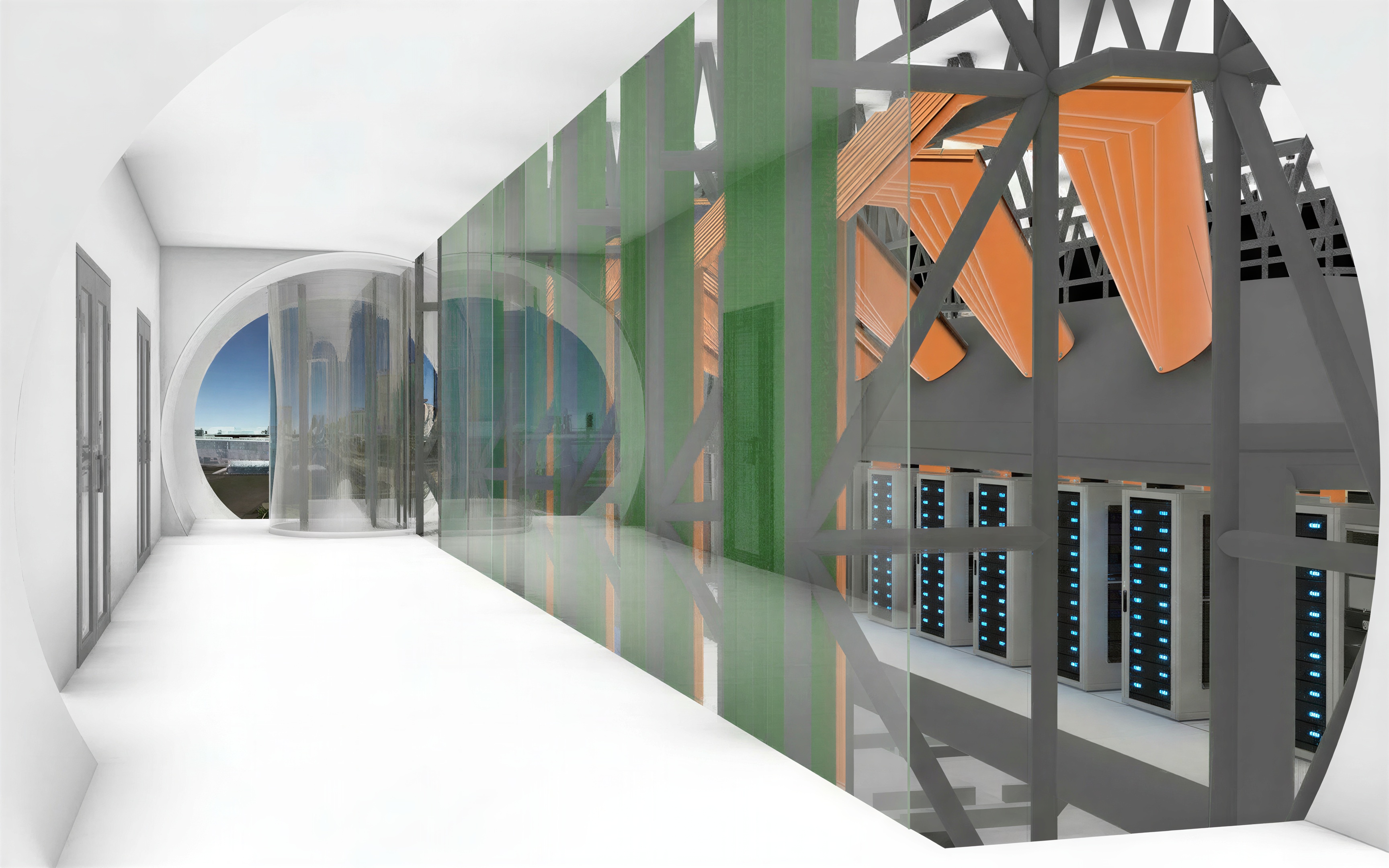 do not change anything about the image only generate people walking down the hall only add two to four people
