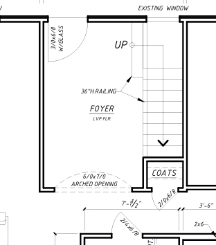 make the dowstairs foyer a 3d rendering with shiplap walls a gold library sconce on the wall opposite the stairwell with 48 x36 art piece the staircase to have a wood handrail with iron posts