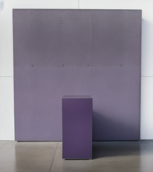 modernist exterior shot keep colors and materials as they are dark purple wall in back white pedestal in front concrete ground architecture