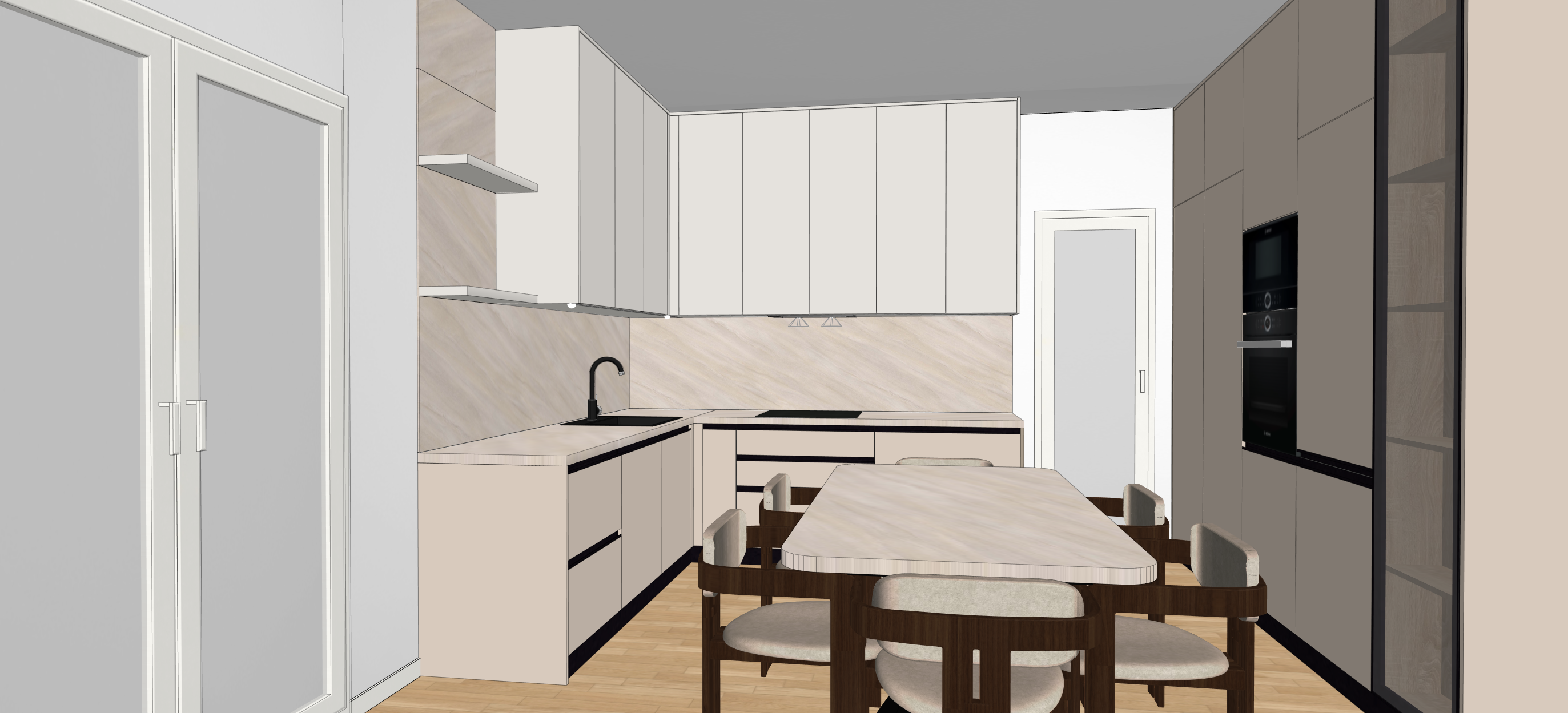 the door that is straight is the door that leads to the balcony but this door is actually the front door from the hallway