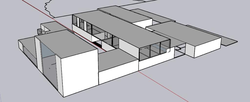 minimalism exterior shot add landscape the white part of the building is mostly wood texture the transparent part is glass and the structure of the building is steel so the building materials are steel wood texture and glass architecture