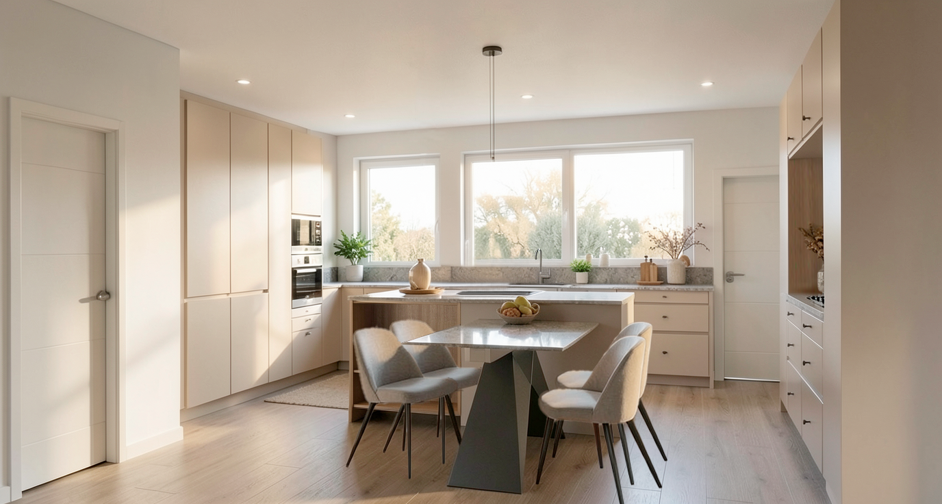 cambia las sillas que aparecen donde la mesa que sean mas modernas y acorde a una mesa de cocina otro modelo