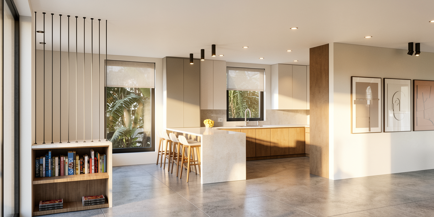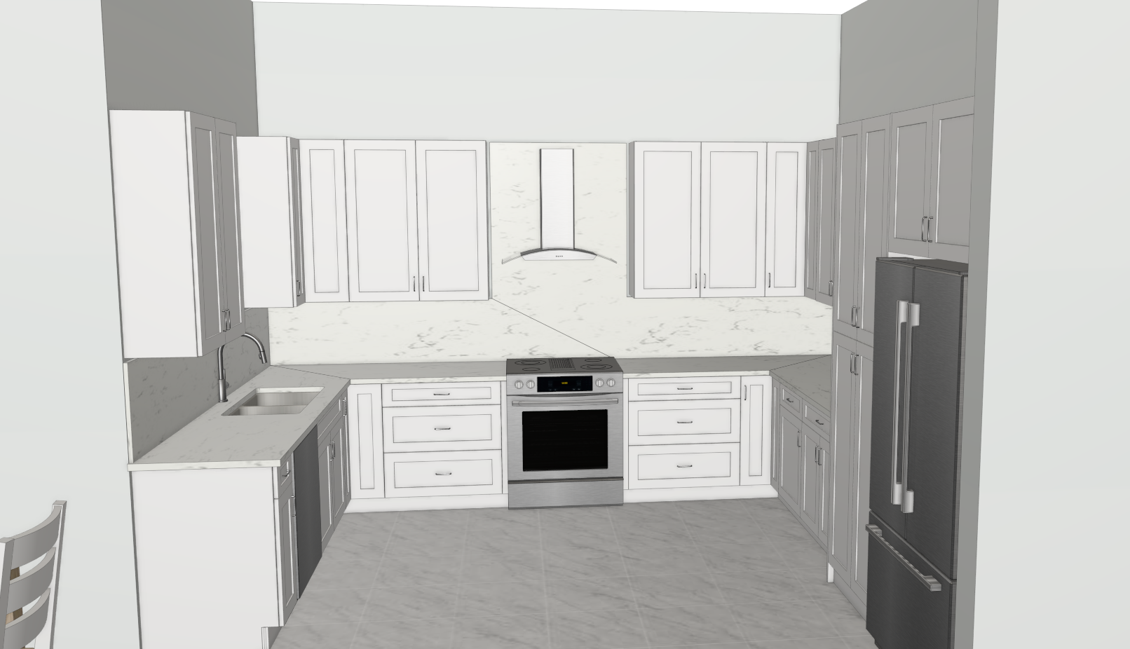 use the provided image strictly as the base model critical instruction do not modify the design in any way do not add any architectural elements do not remove anything do not reinterpret the style do not improve the design do not add crown molding do not add trim do not add led strips do not add under cabinet lighting do not change cabinet height do not change ceiling design do not change proportions do not change layout the geometry structure and layout must remain exactly the same as the original image you are only allowed to improve realism of materials lighting and surface finishes if any design modification occurs regenerate realism improvements only cabinets standard shaker doors flat recessed panel 90 degree inside edges white semi gloss lacquer finish smooth sprayed surface soft realistic reflections accurate shadow depth inside recessed panels subtle material thickness and edge realism do not change door proportions countertop backsplash white marble with subtle gray veining high polish finish stronger natural reflections add realistic surface depth improve edge definition mandatory remove all visible seam lines surface must appear as a single continuous slab no joint lines visible appliances real brushed stainless steel texture accurate metallic reflections realistic glass transparency on oven subtle surface imperfections for realism do not change position or size lighting maintain existing lighting layout improve global illumination soft natural shadows balanced exposure do not add new light sources camera same perspective as original no angle change no dramatic styling architectural realism only final instruction this task is material enhancement only behave as a rendering engine not as a designer