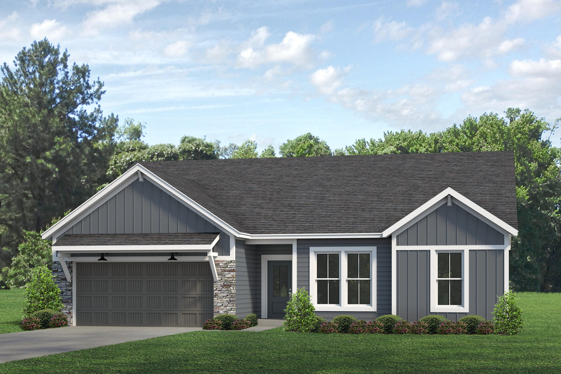 make this rendering more interesting but do not change the colors or any structural aspects of the home make it a cozy dusk but bright evening