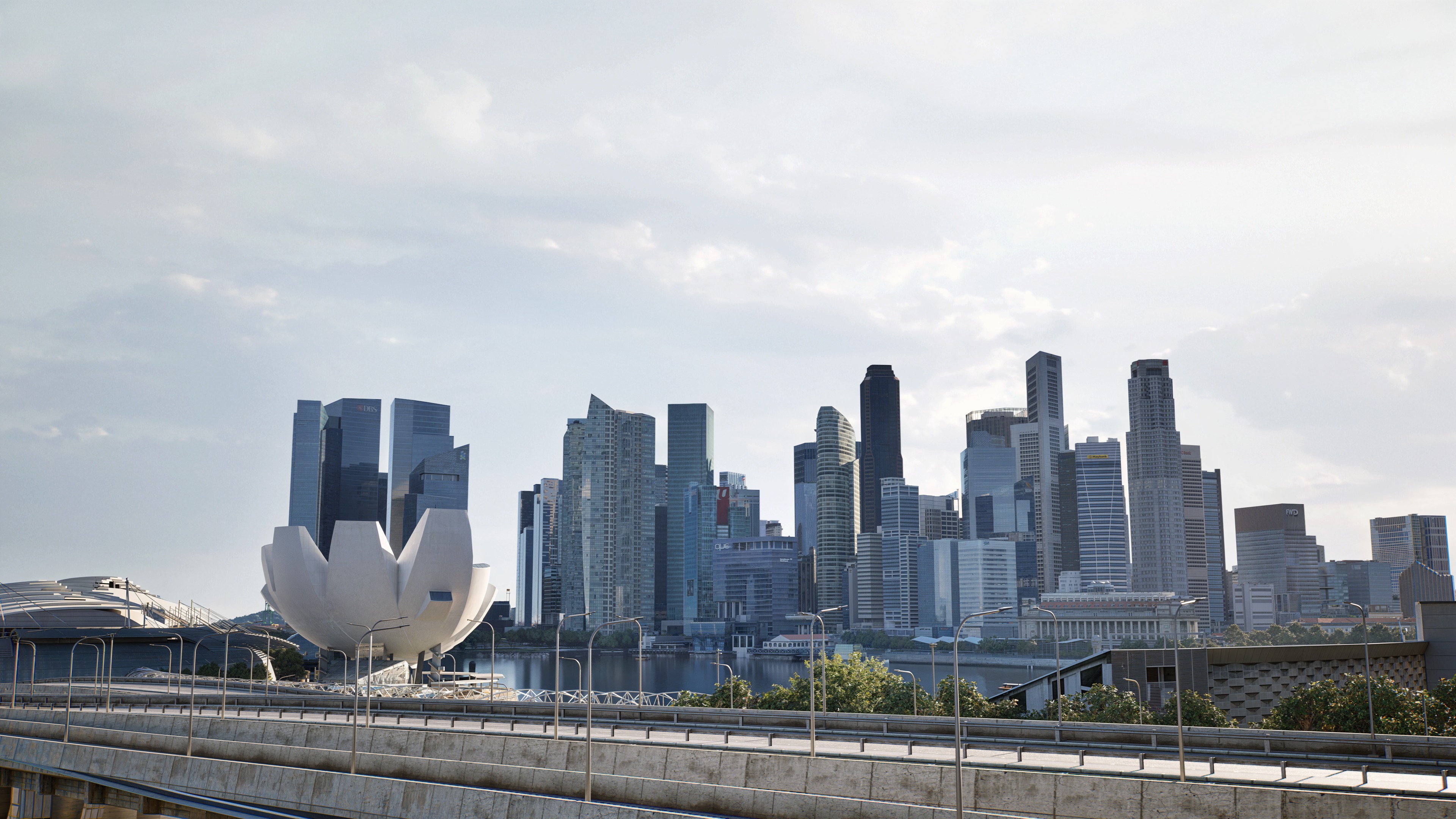 singapore cbd scene retain input image composition improve global illumination photorealistic slightly warm tone