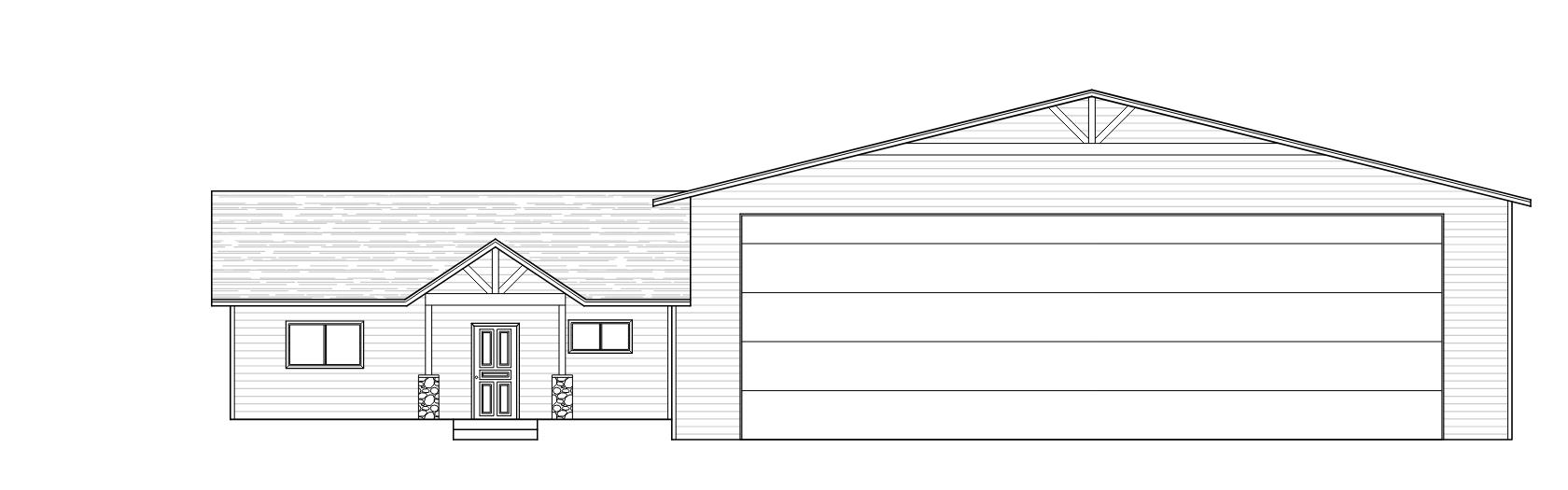 make grey architectural shingle roof olive green paint with warm wood posts and beam detail in both gable ends set in a forest with mountains in the background