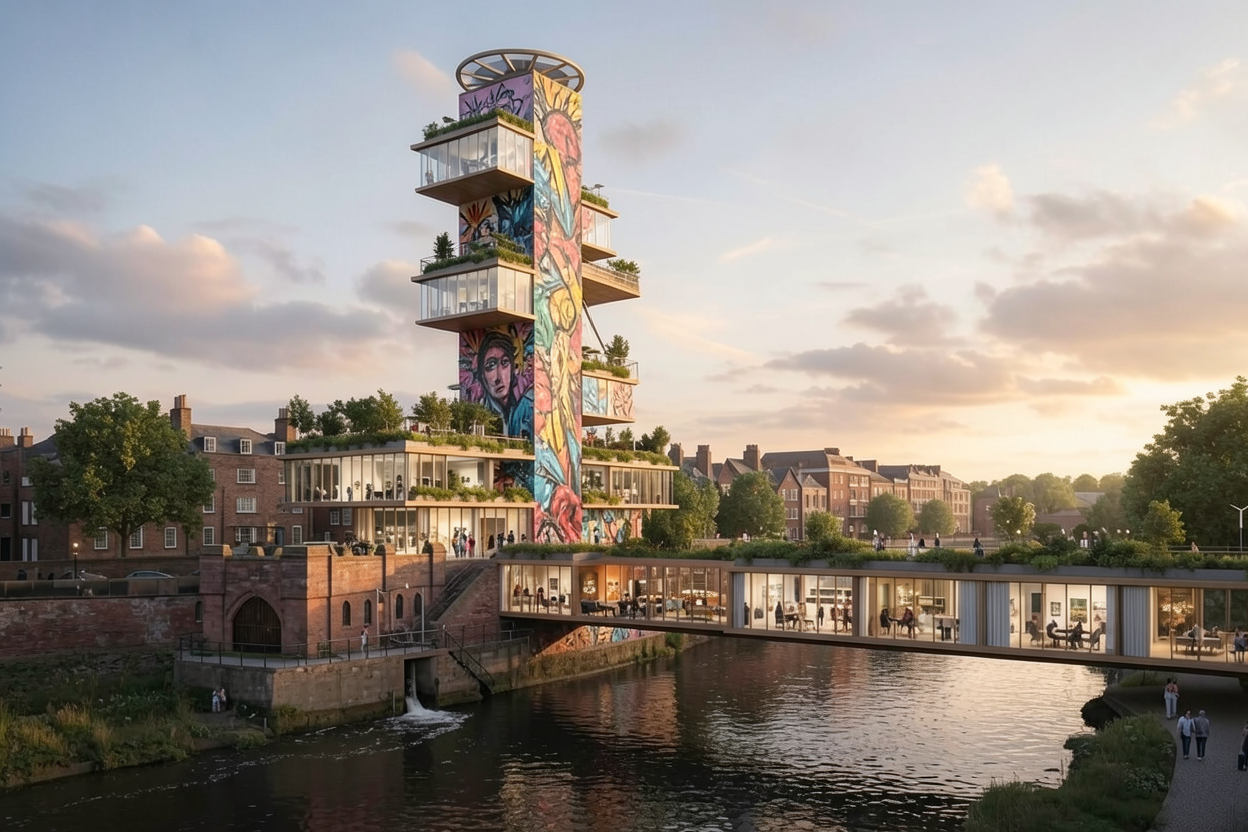 keep everything the same only replace the bright yellow area around the building with natural and realistic courtyard in gravel