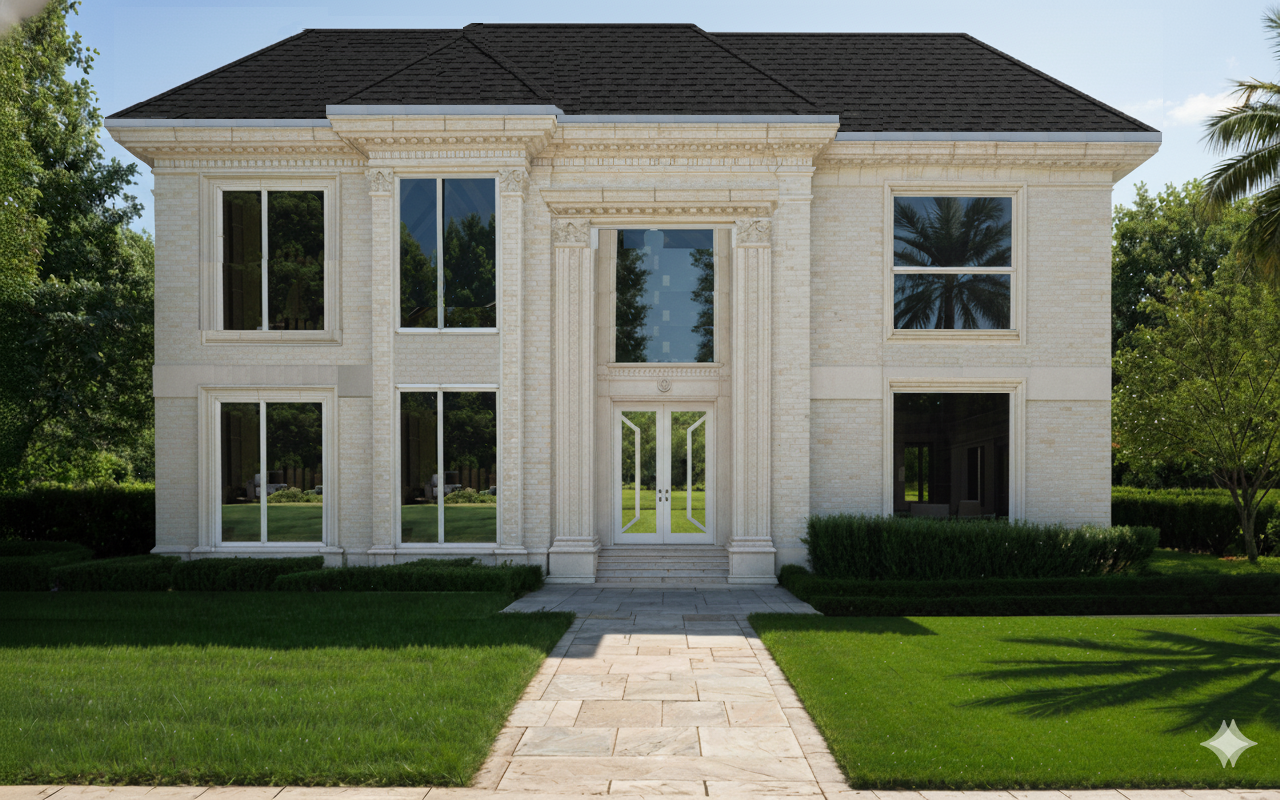 keep the building white color show furniture behind glass