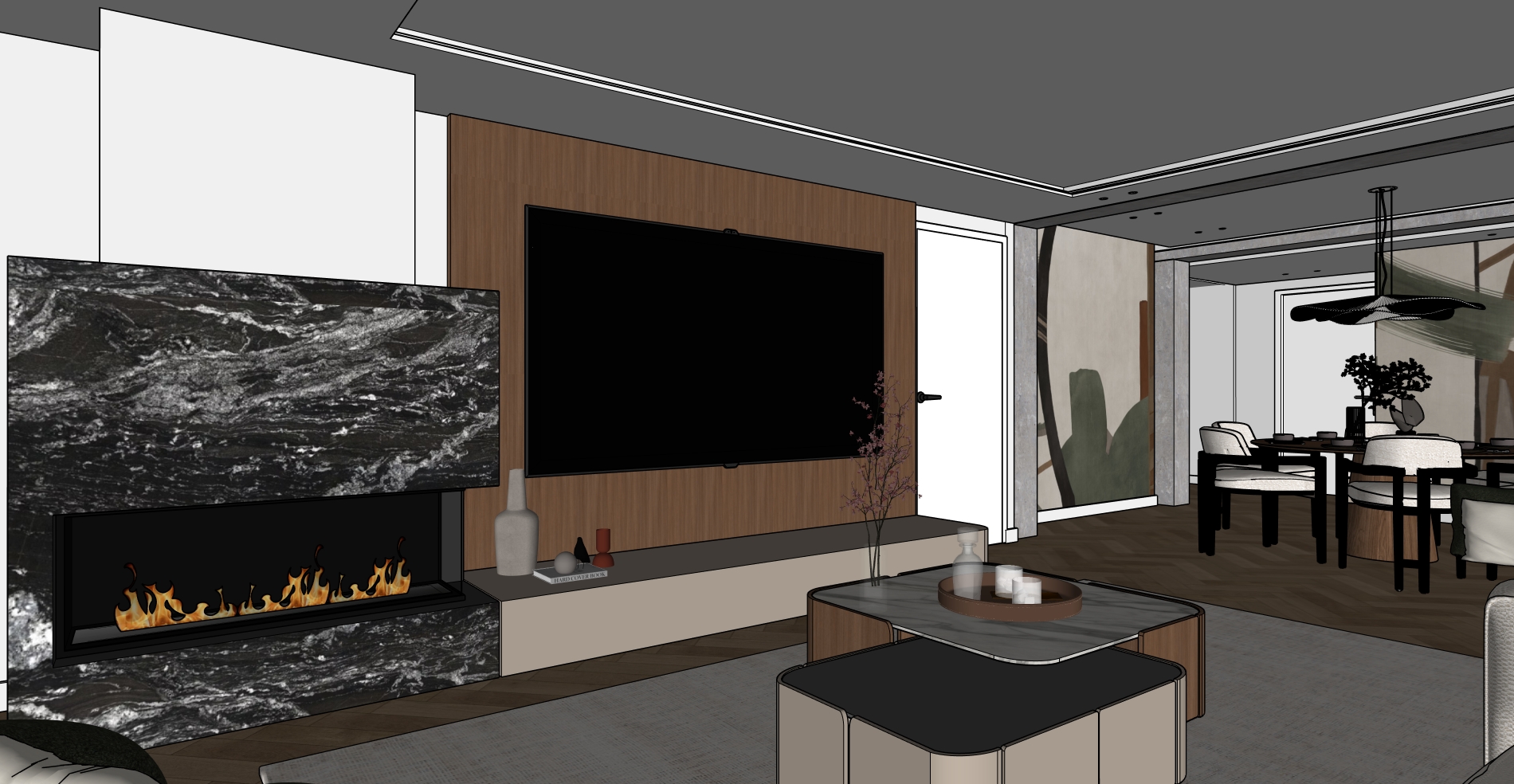 crea una imagen fotorealista de este sketchup manten los papeles pintados