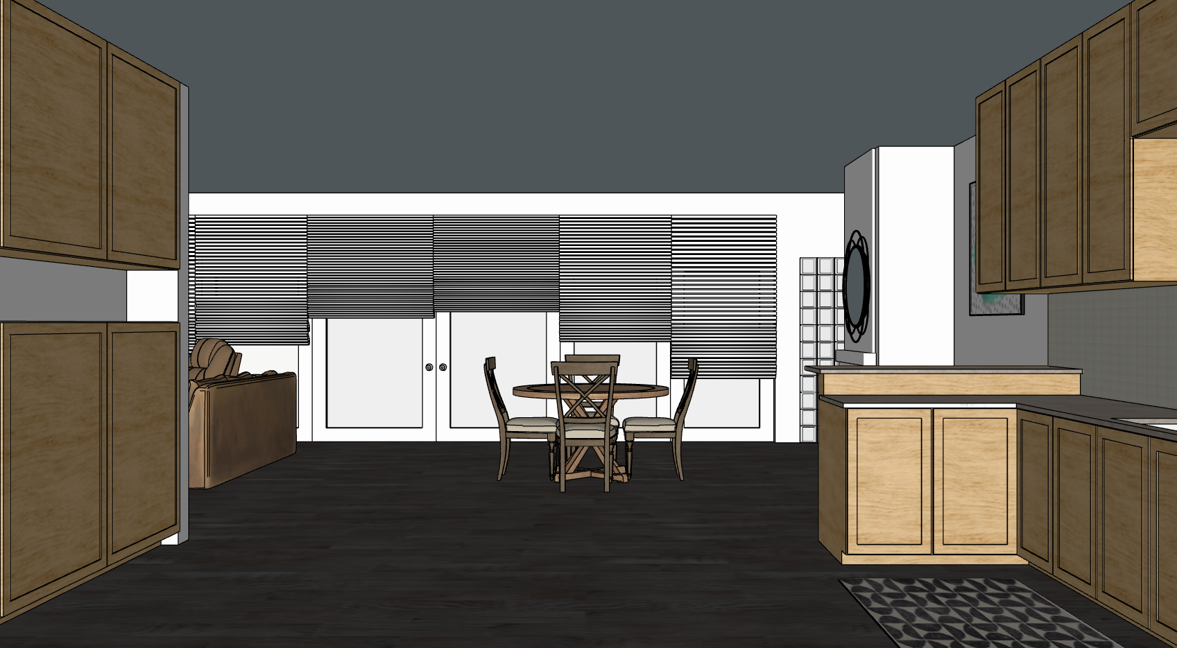 change the back wall to windows with blinds also it looks haunted now can you not make it scary just make it ugly