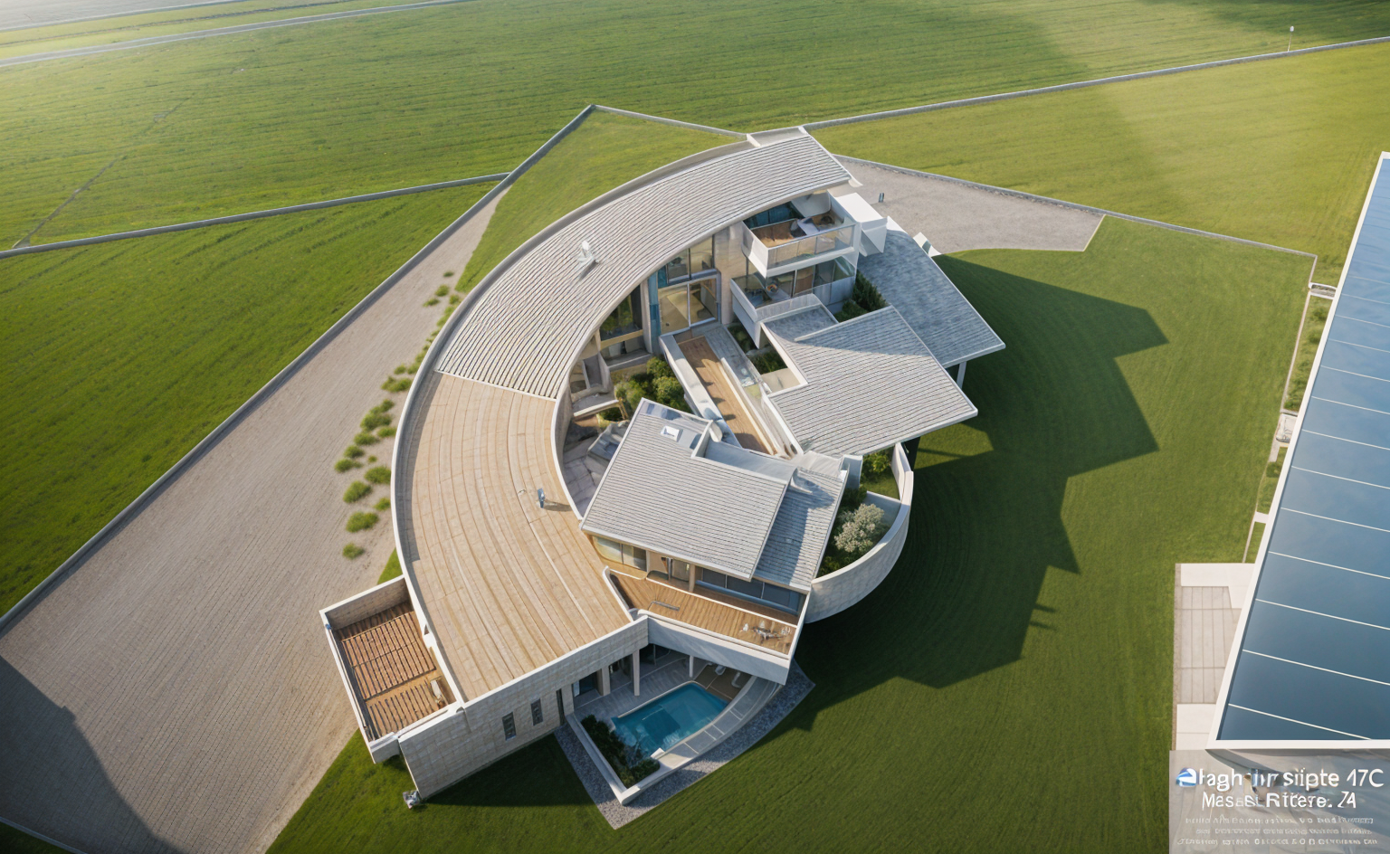 modern perspective shot use nature material wood stone concrete coziness and greenery set in the evening with soft gentle sunlight make it a community center make roofs curvy architecture