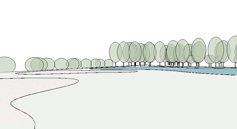 create a picturesque architectural render of a lakeside leisure site in the foreground on the left is a watersports pavilion there are people on the lake paddle boarding there is decking and a jetty at the side of the lake with people preparing to get in the water in the background is a curved leisure building clad in timber with light wood tones next to to the leisure building is a children s splash park with water features and to the right of the image is a large beige teepee balance the image with soft landscaping with colourful planting and natural lighting low level shrubs line the background with some trees and behind the trees in the far distance on the right are some holiday lodges