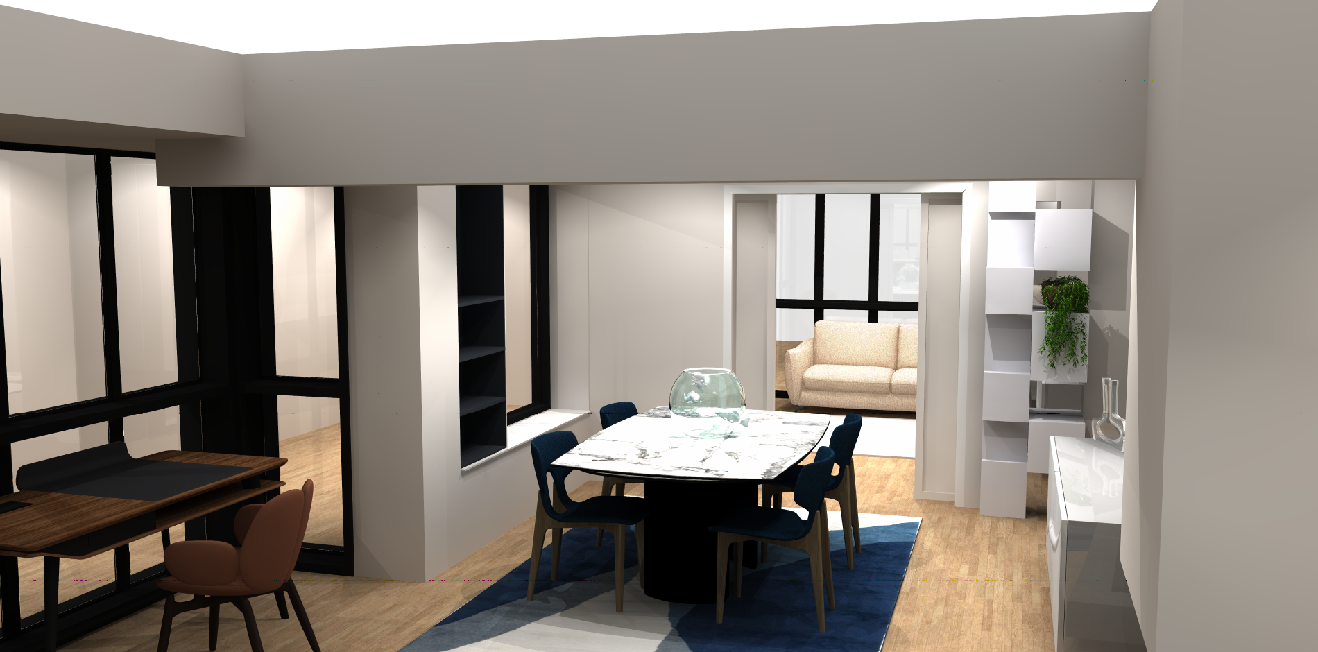 laisse le vase comme il est sur la 3d avec les poissons en verre ne change rien