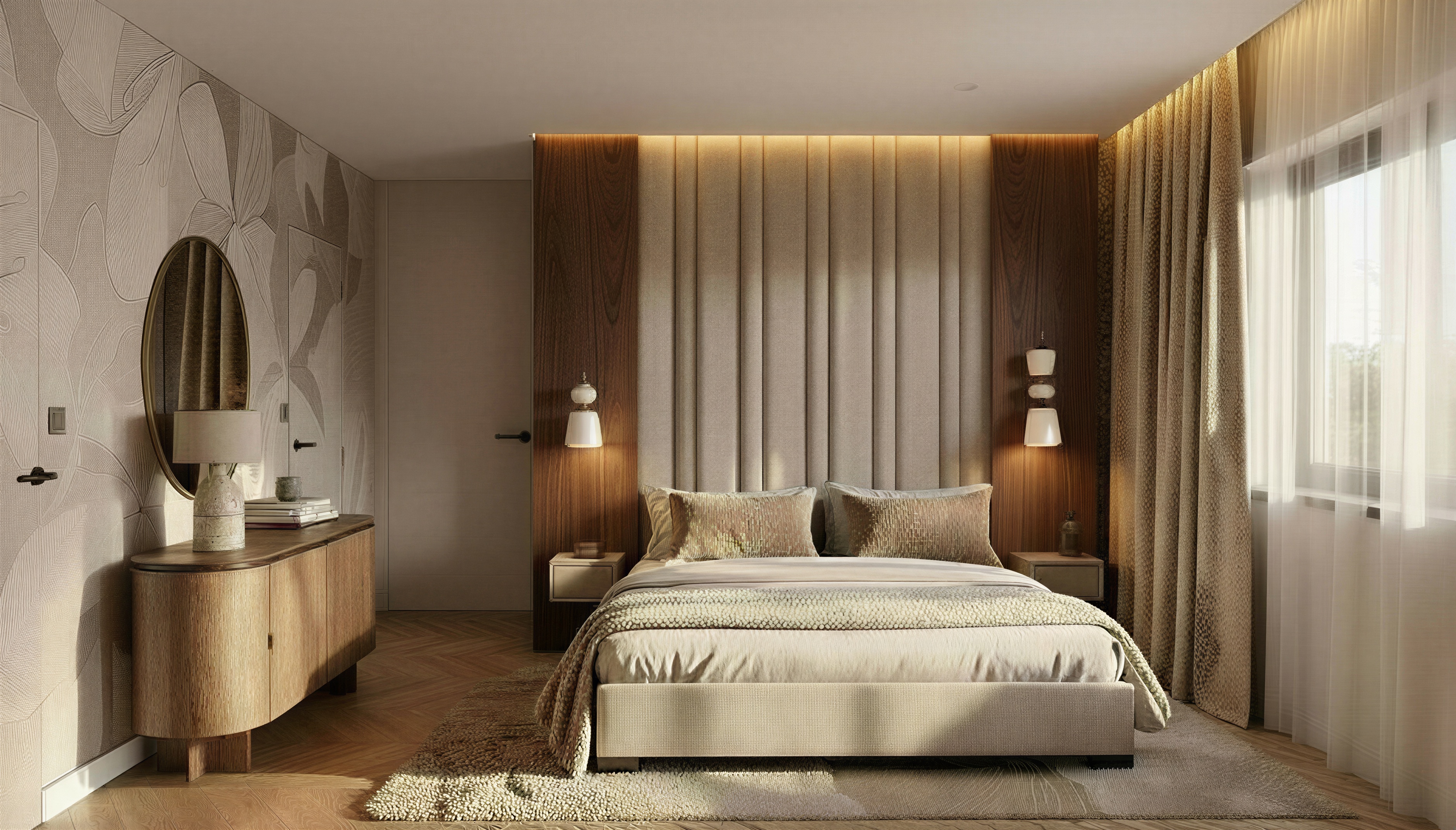 add framed outlets in black color and switches on both sides of the bed above the nightstands turn on the lamp on the dresser