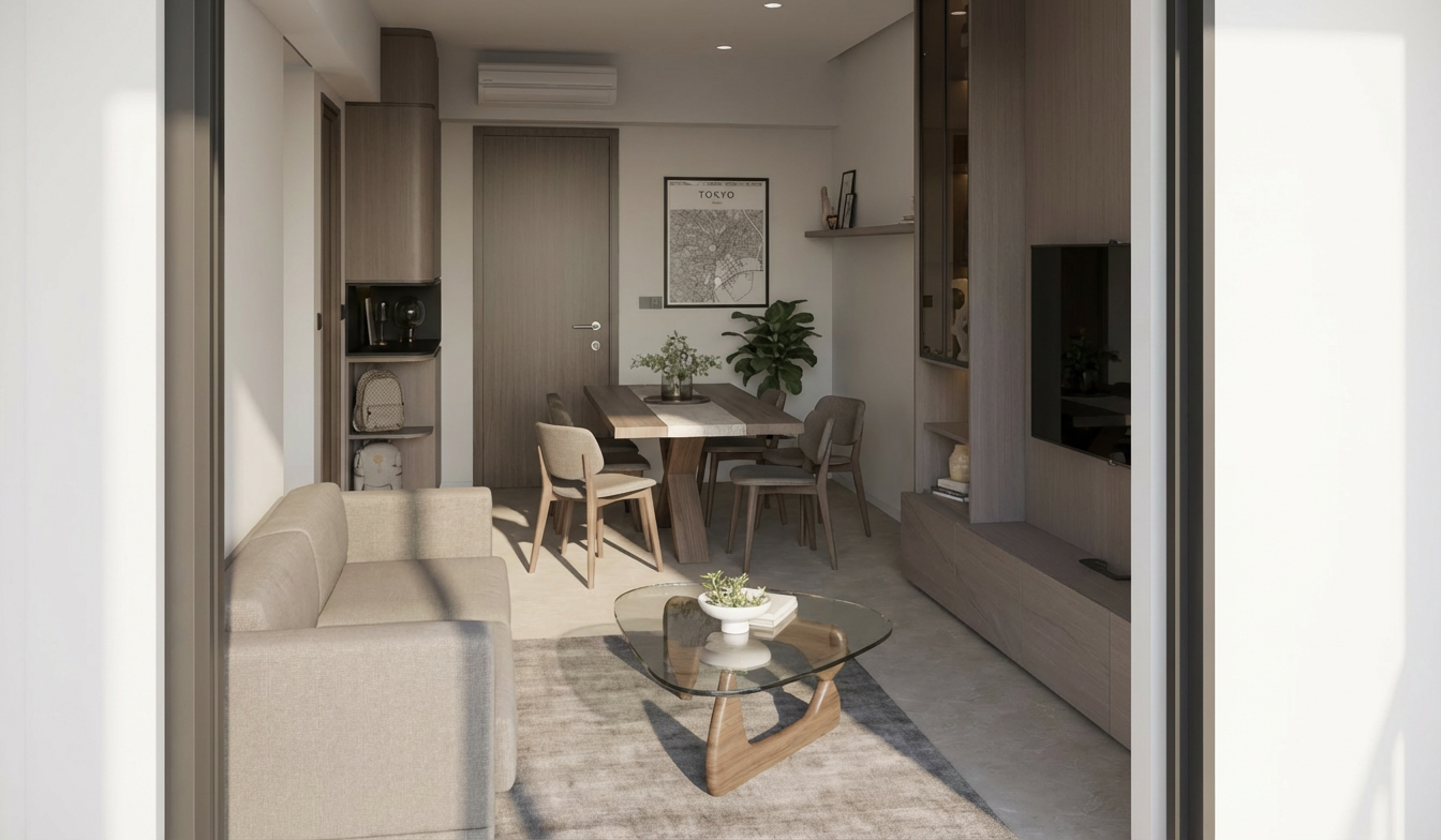 colours and wood texture to remain accurate as per original photo wood texture in subtle grains carpentry in muted mid grey like taupe with subtle wood grains showcase glass cabinet in dark brown tinted glass tv feature wall in muted beige cement like wall tv console in off white marble subtle grains all other walls and ceiling in off white