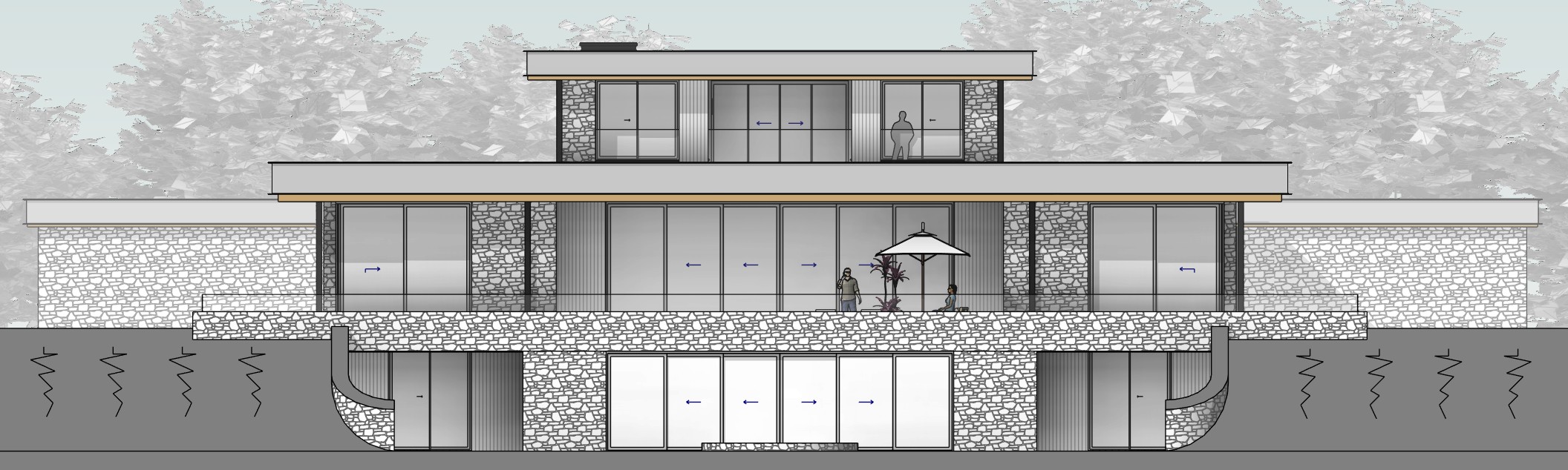 modernist exterior shot modernist exterior shot minimalism close up shot rural setting architecture stone and cladding wall finishes dark bronze roof line grass slope in fron tof the house architecture architecture