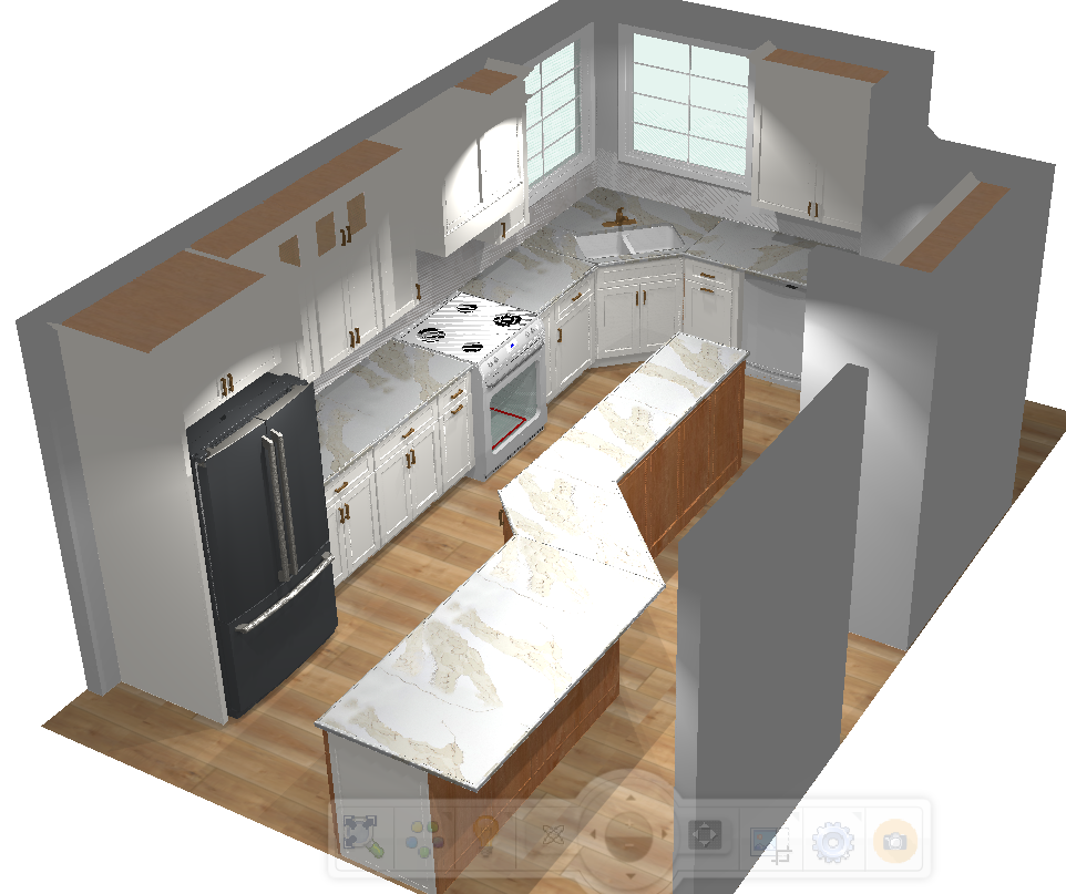 modern kitchen with warm floors a large island that starts narrow 18 deep and then goes to 24 with an overhang for bar stools