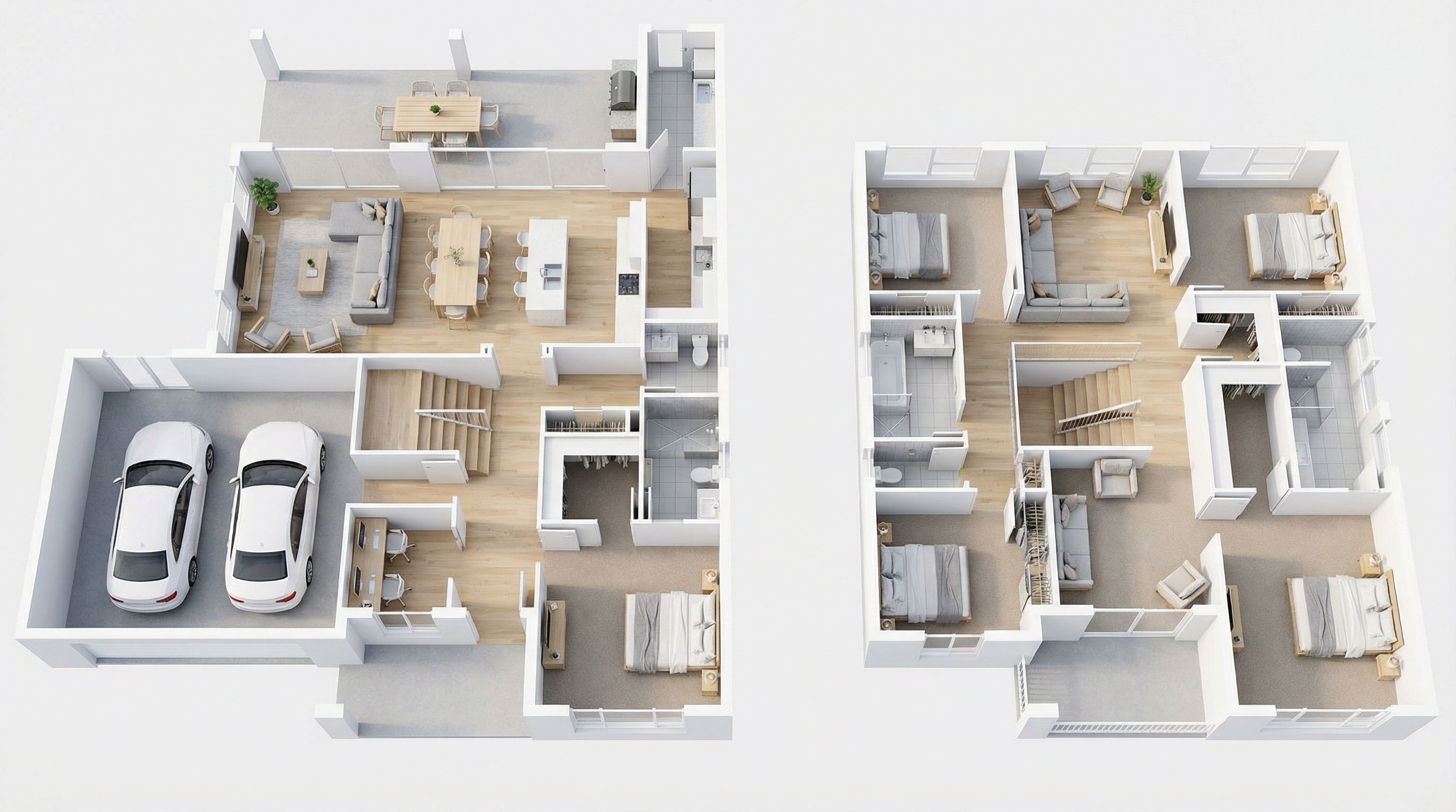 this bright french country modern laundry room is filled with natural light the blue cabinets are accented by the blue in the handmade tile backsplash warm natural quartz countertops create a cohesive space for folding cloths and the warm oak floating shelves are a perfect spot for accent decor cabinets and floating shelves are underlit with warm recessed lights