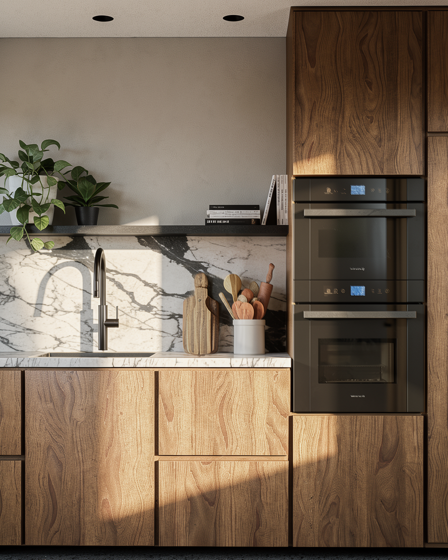 include a person cooking a man we watch him back in the left side of the picture integrate him considering the light in scene