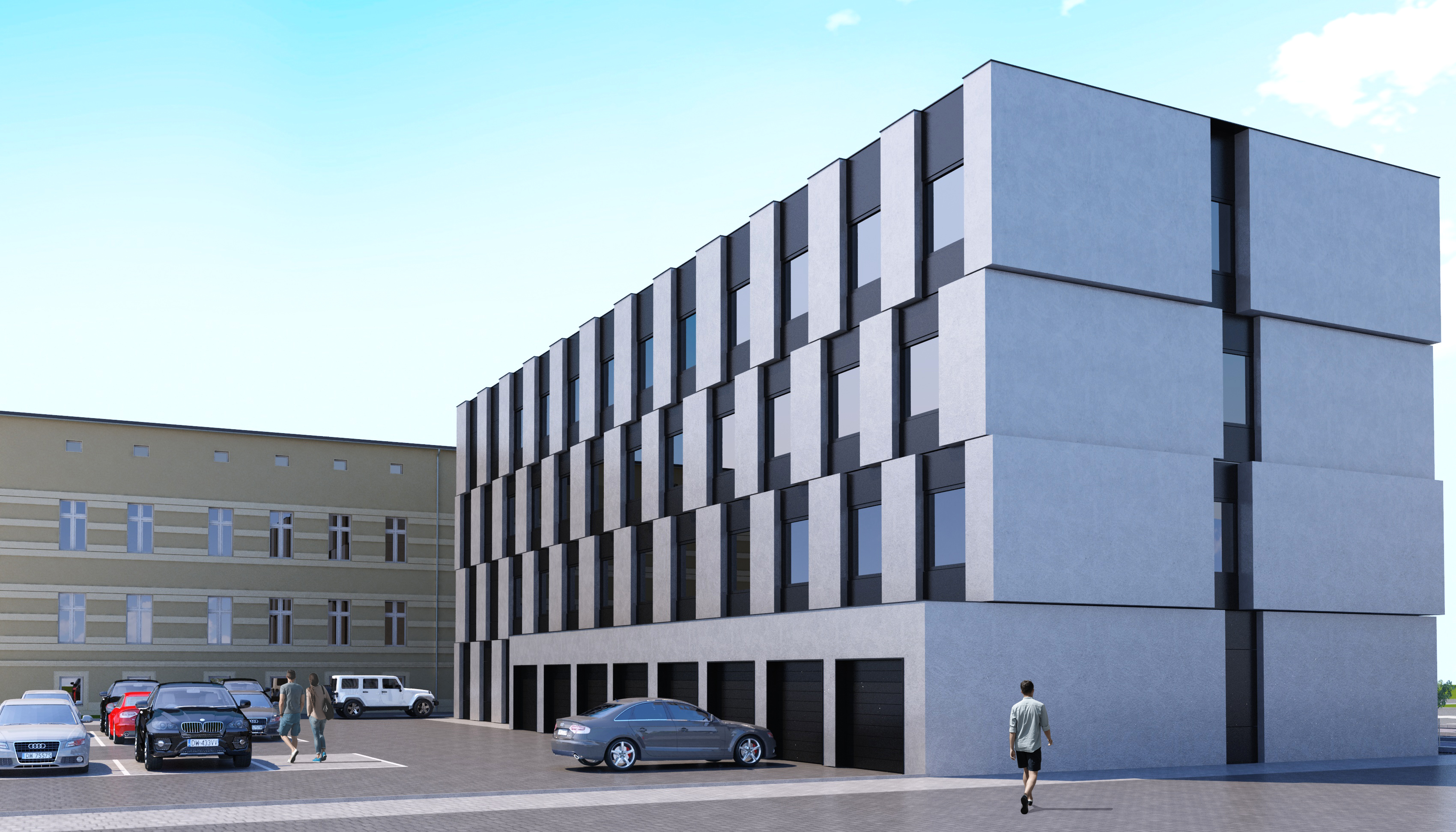 do not change anything in the building facades make a photorealistic view do not add additional windows niczego nie znmieniaj na elewacji nie dodawaj okien dodatkowych do not change anything on the facade do not add additional windows sunrise