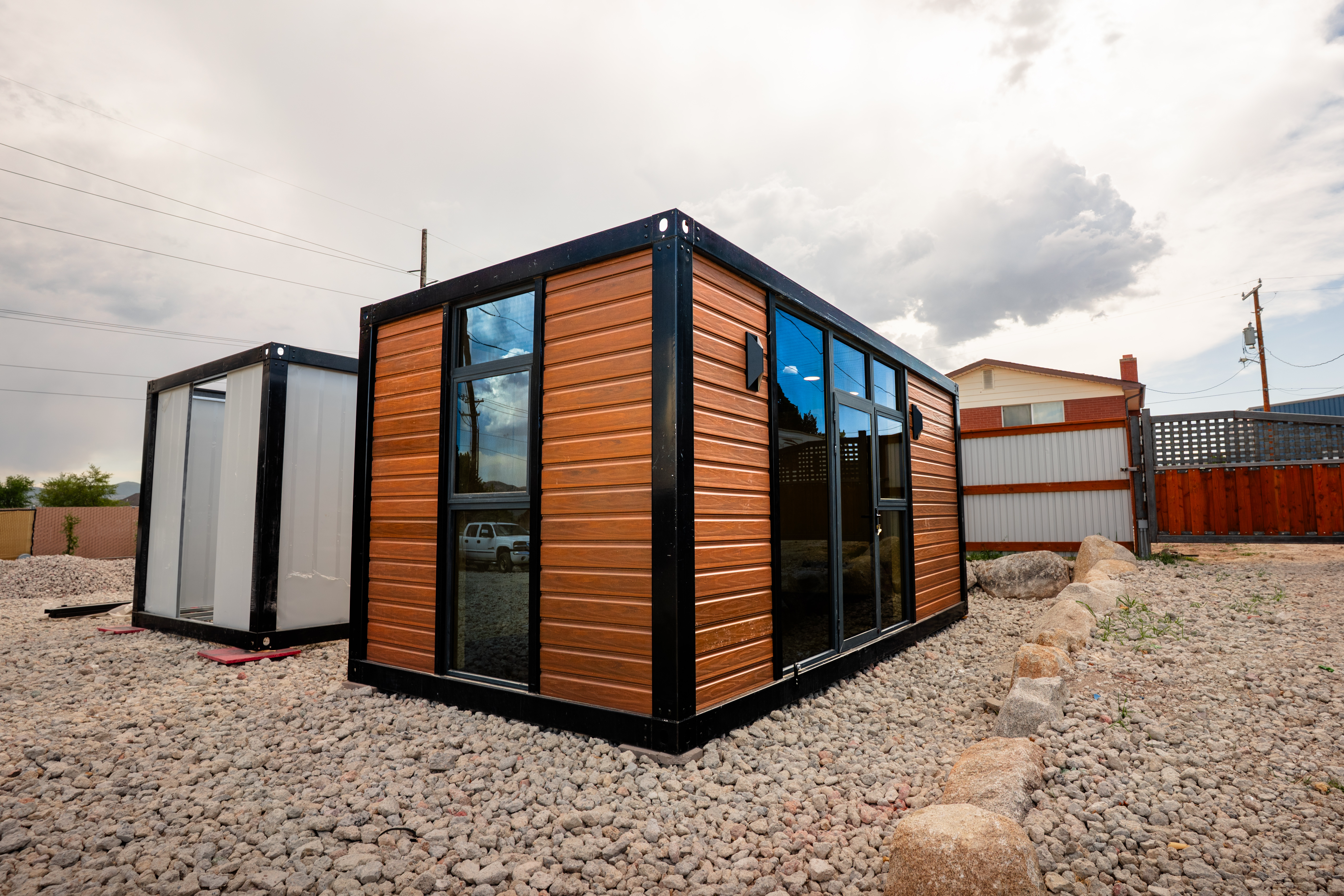 modernize the exterior in place in a background of nice trees backyard landscaping